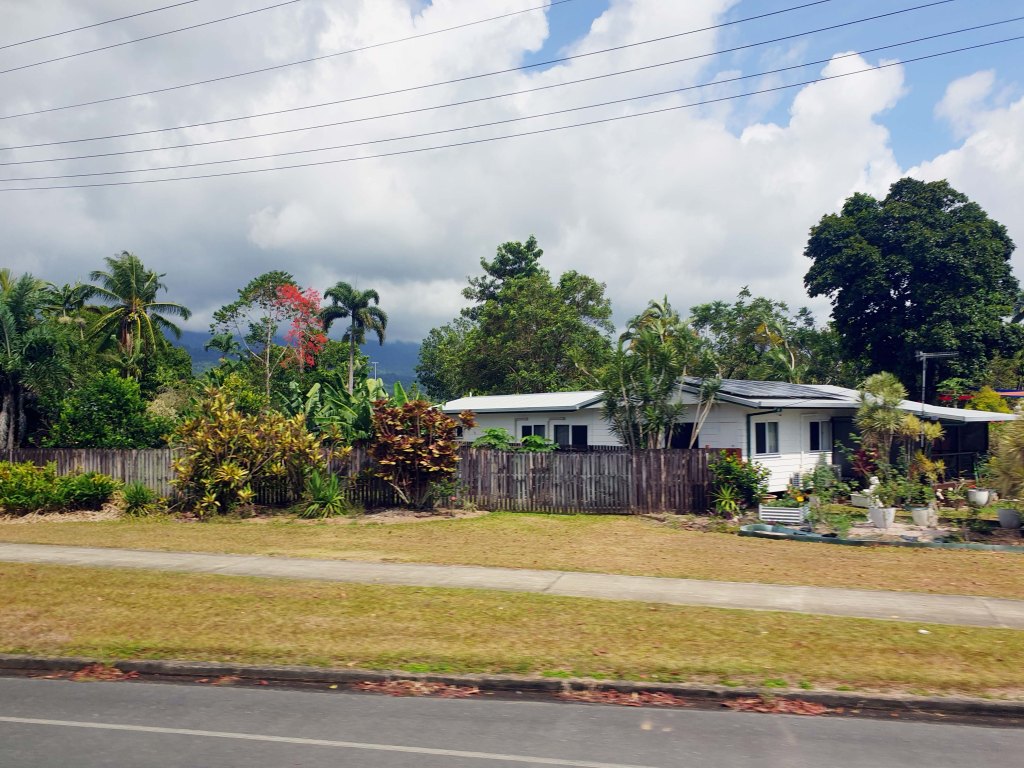Ein absolutes Highlight stellt der Besuch der Mossman Gorge dar. Wir fahren zunächst an der Küste an Zuckerrohrfeldern vorbei und erreichen Mossman Village.