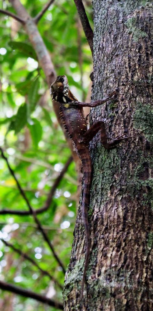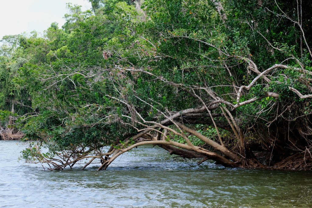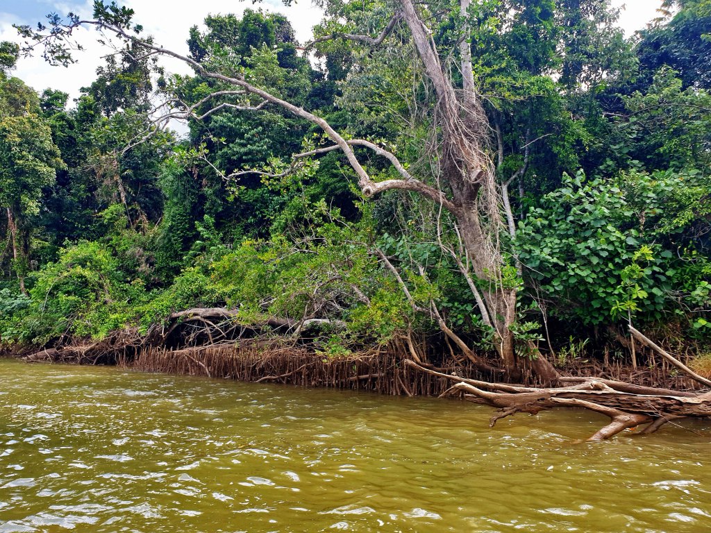 Nach diesem äußerst interessanten Besuch haben wir noch eine kurze Flussfahrt auf dem Daintree River unternommen. Der Daintree River enthält auf den letzten 20 km vor der Mündung in den Pazifik Brackwasser. Das liegt an dem recht hohen Tidenhub in der Gegend. Dadurch befinden sich hier sowohl Freshies als auch Salties.
