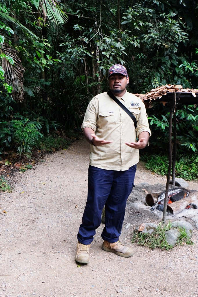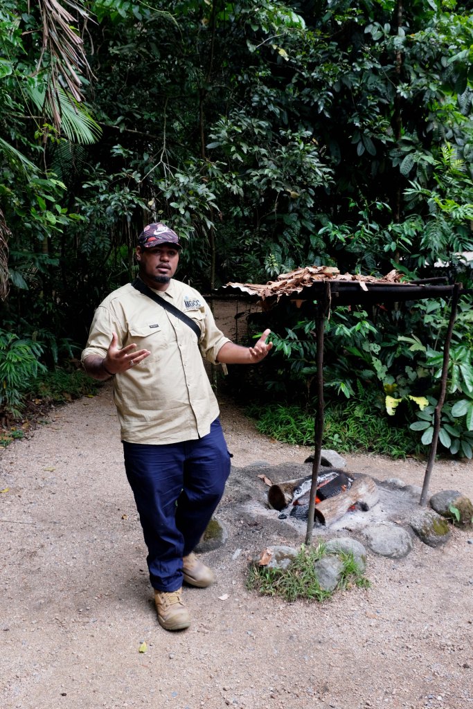 Unser Guide empfängt uns mit einer traditionellen Rauchzeremonie der Aborigines. Sie dient der spirituellen Reinigung und der Vertreibung böser Geister und stellt sicher, dass wir akzeptiert und geehrt werden, während wir uns im traditionellen Land des Kuku Yalanji Volkes befinden. Das Volk lebt hier seit tausenden von Jahren und bewahrte bis heute weitgehend seine Traditionen.