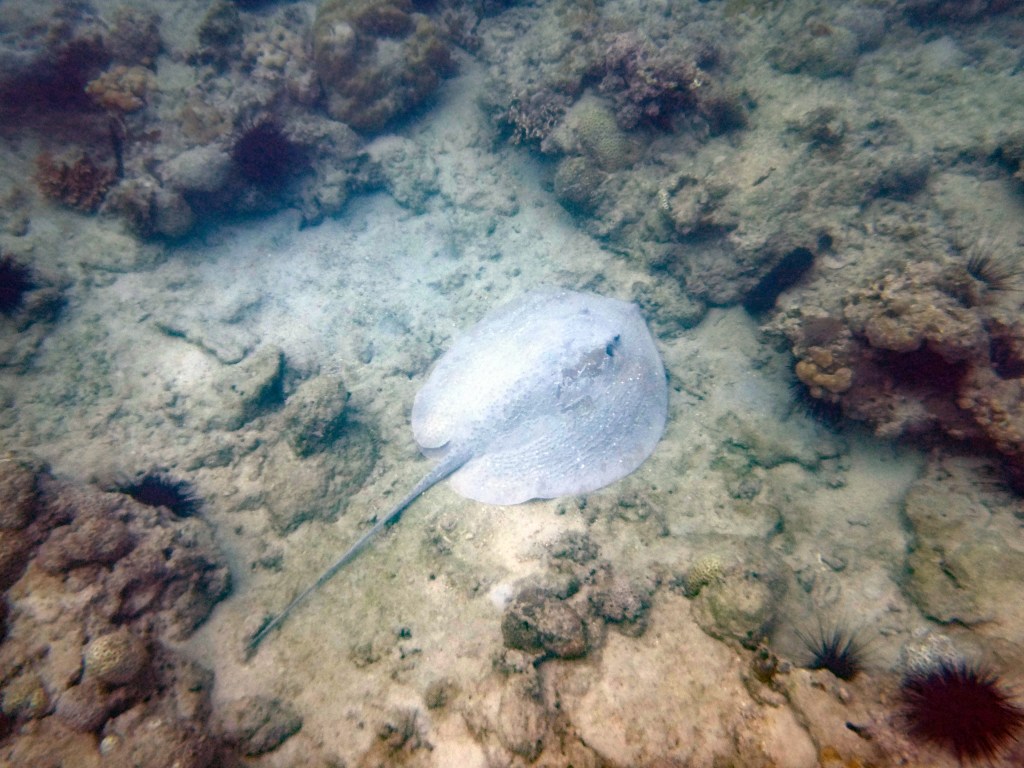 Es ist Stingray Season und als wir am ersten Abend bei Ebbe im flachen Wasser sitzen, werden wir von den Rochen begrüßt. Ein kleiner Schubs hier, eine kleine Streicheleinheit am Rücken, jetzt wussten wir, sie sind da …