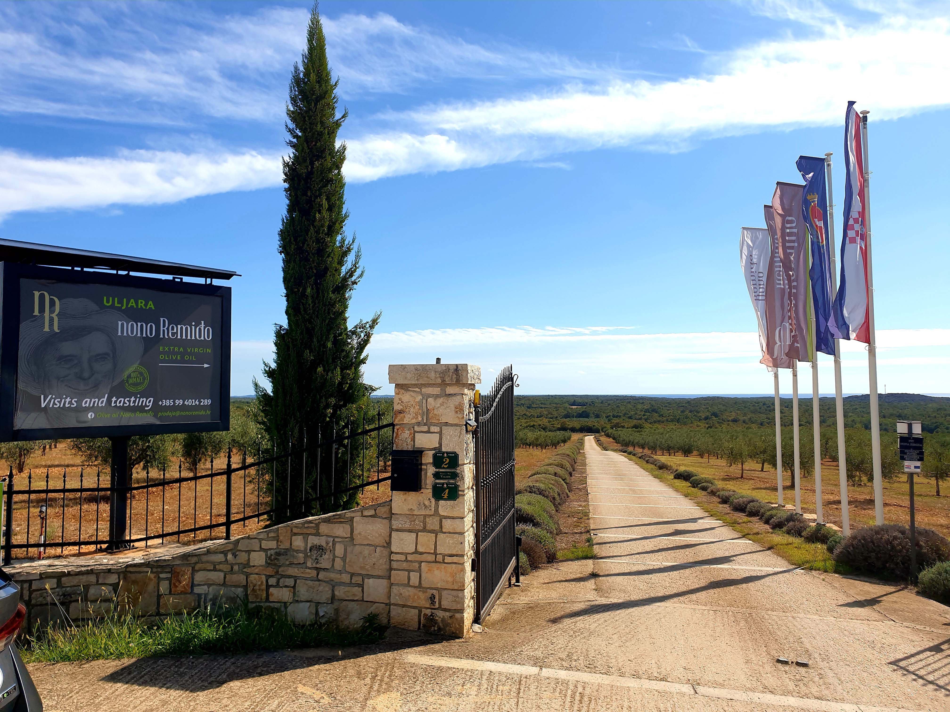 Auf unserem Weg nach Pula wollen wir einen Olivenöl-Produzenten aufsuchen. Nach ausführlicher Lektüre der Bewertung von Olivenölen im Feinschmecker Magazin haben wir einen ausgezeichnet bewerteten Betrieb hier vor Ort identifiziert. Nono Remido heißt der Produzent. Ihn wollen wir besuchen um natürlich die Öle zu probieren, um die Qualität der istrischen Öle für uns zu bewerten.