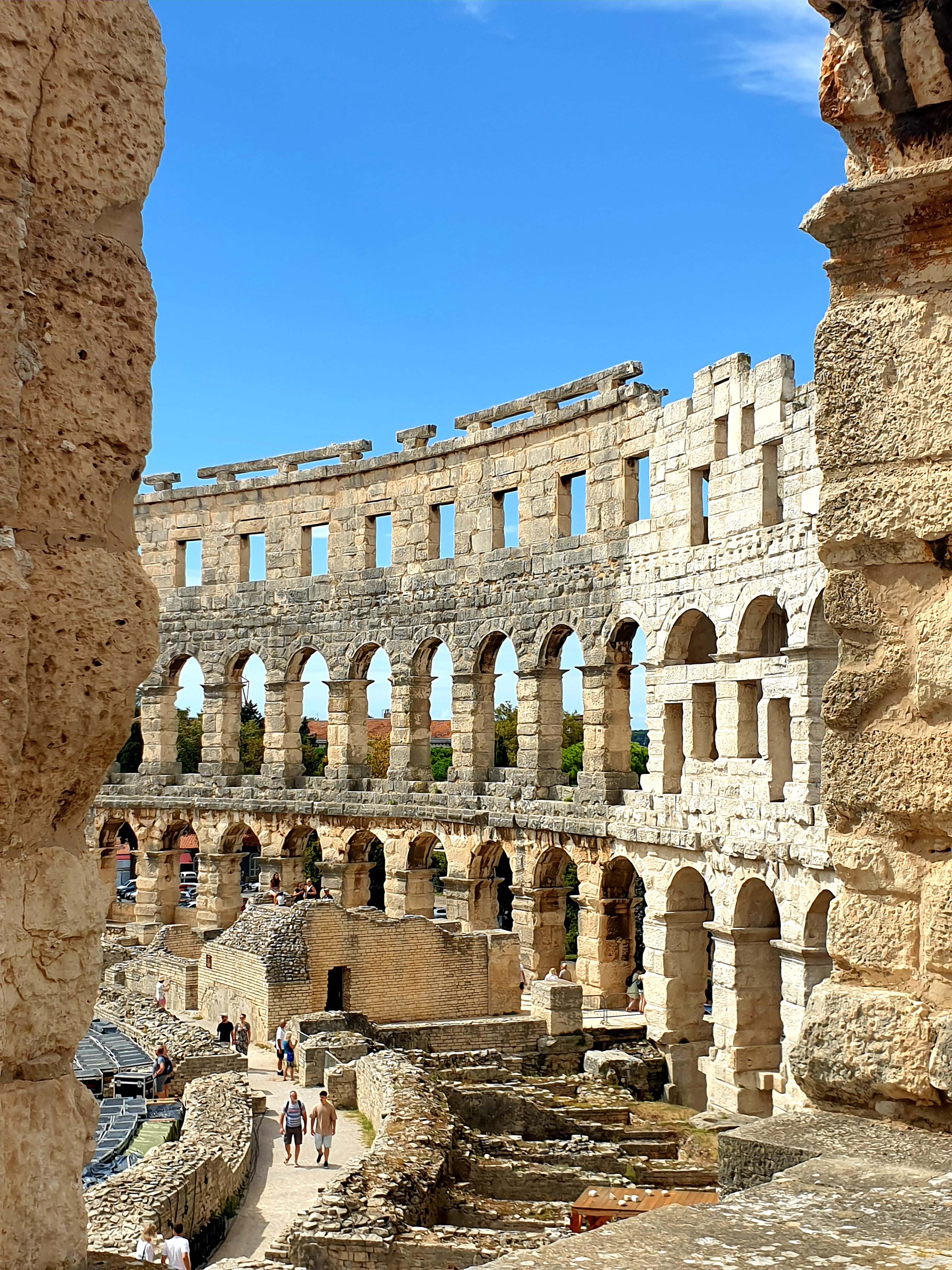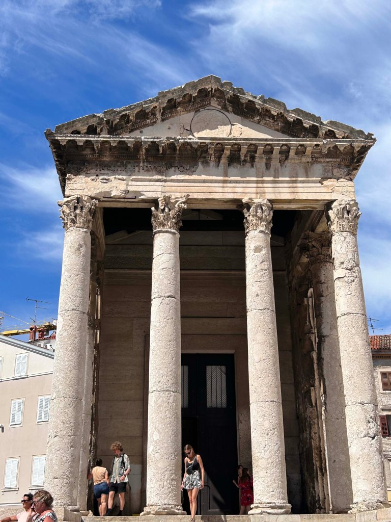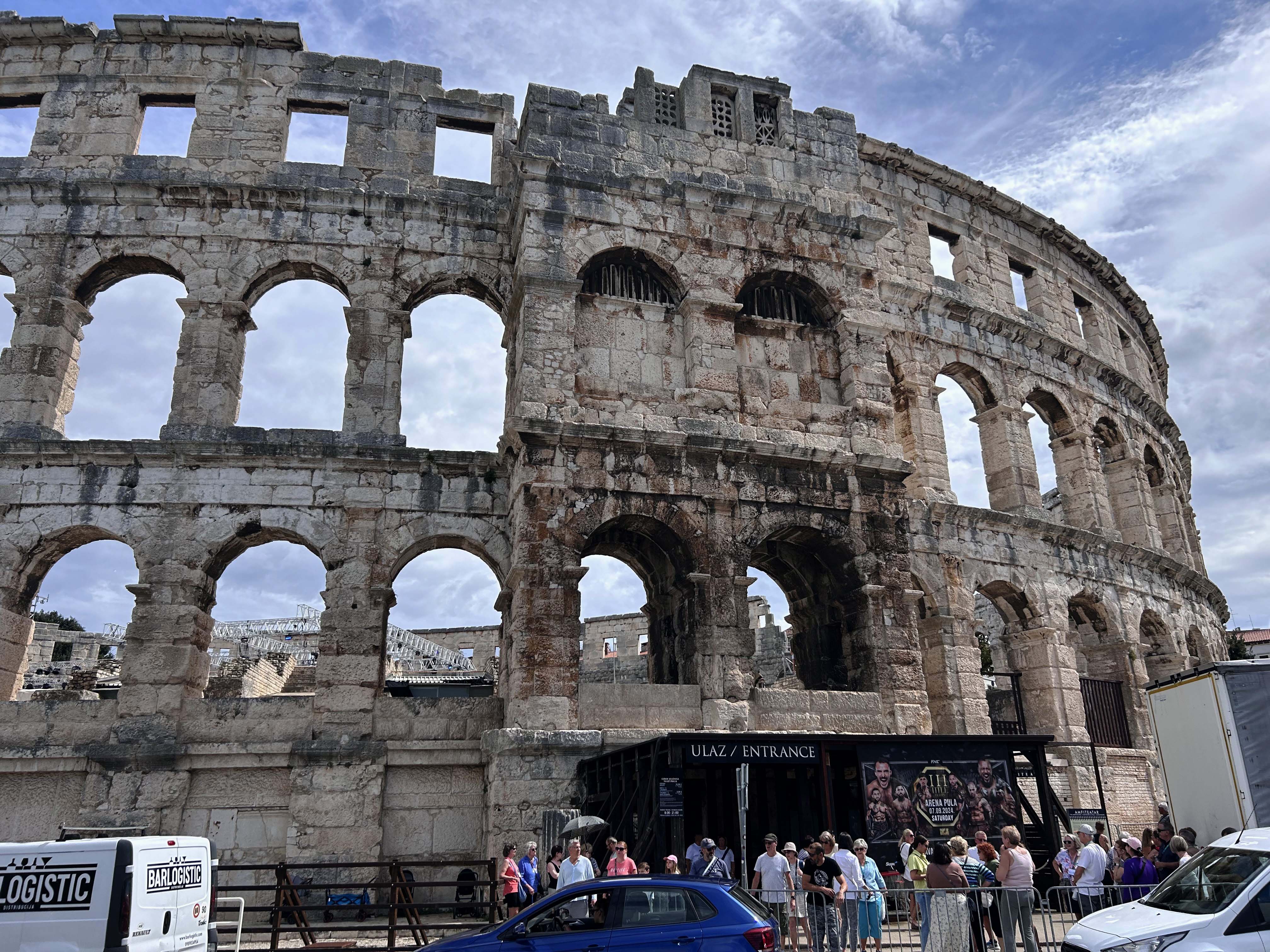 Anschließend fahren wir weiter nach Pula, der Hauptstadt der Provinz Istrien. Sie vermittelt uns eher den Eindruck einer Industriestadt als einem touristischen Highlight. Pula zeigt an vielen Stellen seine römischen Wurzeln ; wurde aber unter der Herrschaft von Österreich-Ungarn zu einem Standort der größten Kriegswerft und zum Haupthafen für die Kriegsschiffe des Kaiserreiches entwickelt.