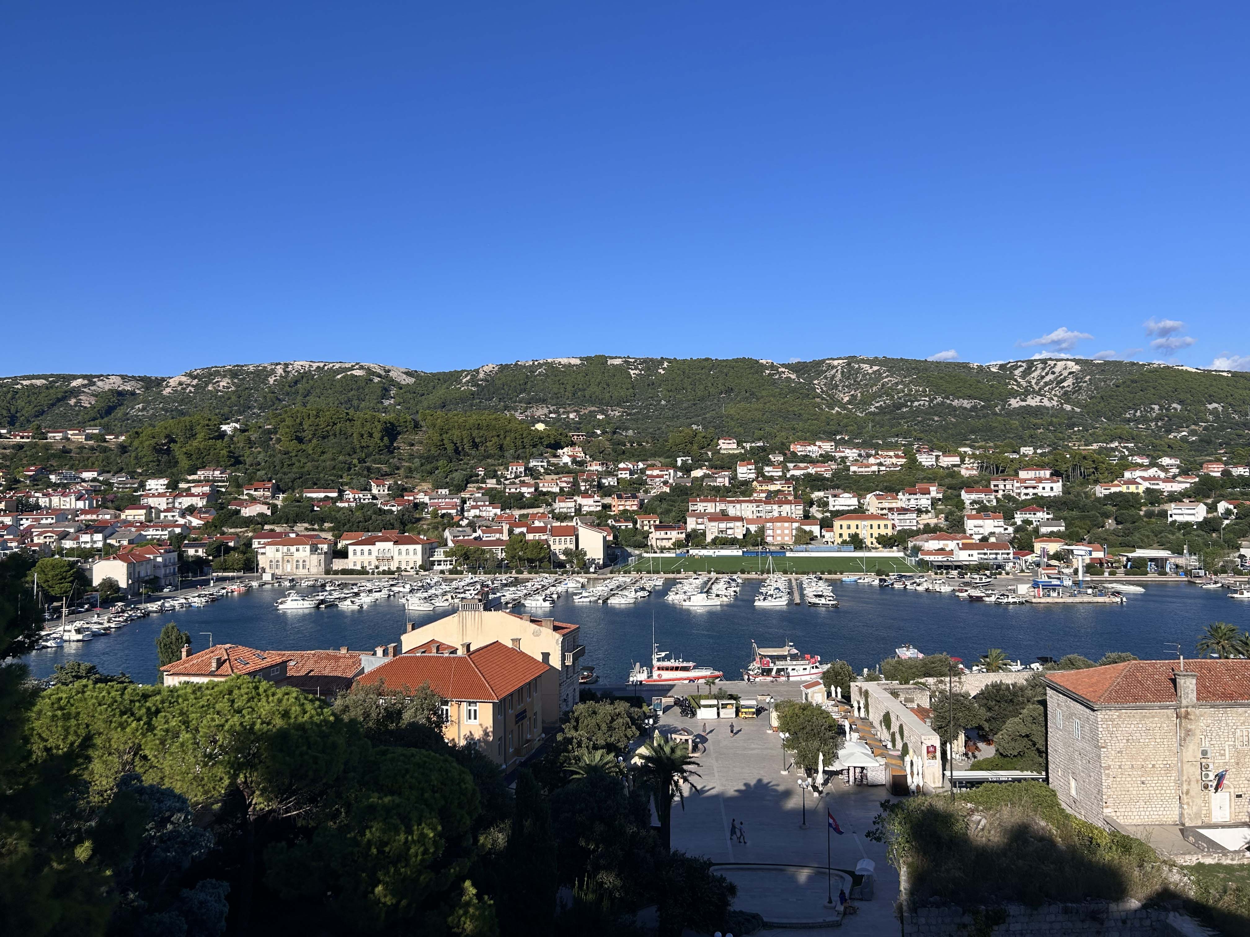Der kleine Hafen hat eine erstaunliche Frequenz an Schiffen, sowohl kleinere Privatboote als auch Fähren, Taxibooten sowie kleinen Kreuzfahrtschiffen, die zwischen den Inseln der Adria unterwegs sind.