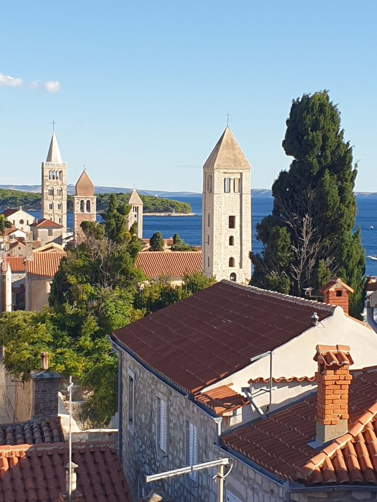 Besonders in der Stadt Rab (Arba Felix) sind neben romanischen Bauten zahlreiche gotische Kirchen und Gebäude sowie Renaissancepaläste zu finden. Sie gilt als Stadt der Kirchen. Fast jedes Jahrhundert wurde eine neue Kirche gebaut.