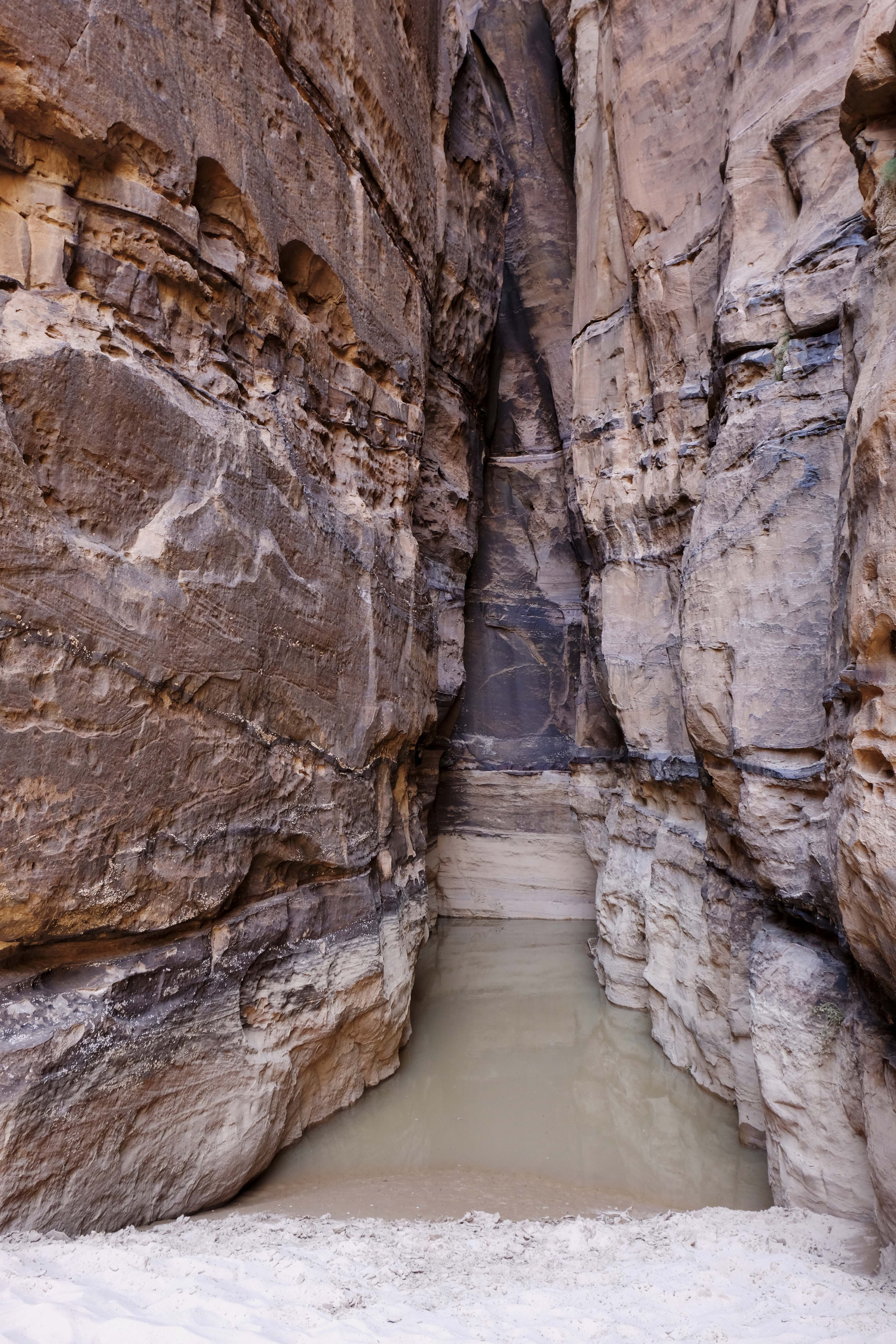 Auch wir finden ein Wasserloch, indem sich Regenwasser gesammelt hat.