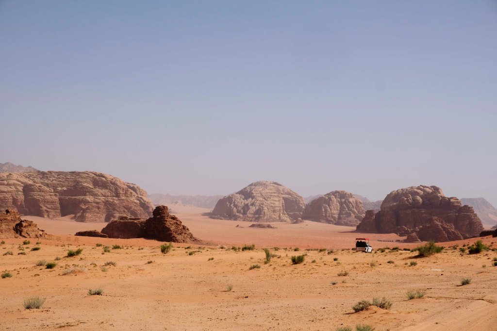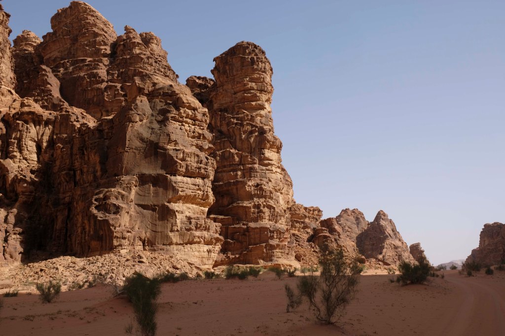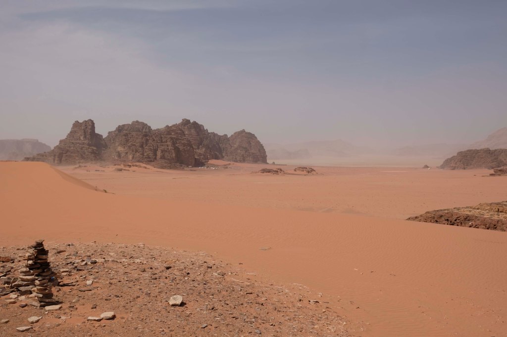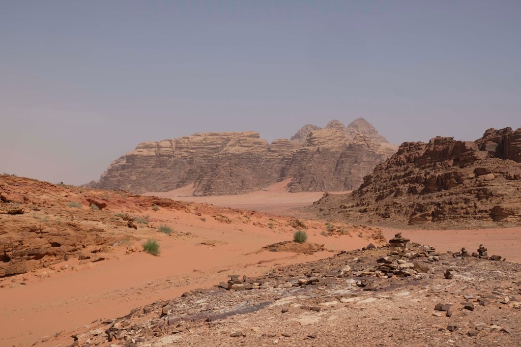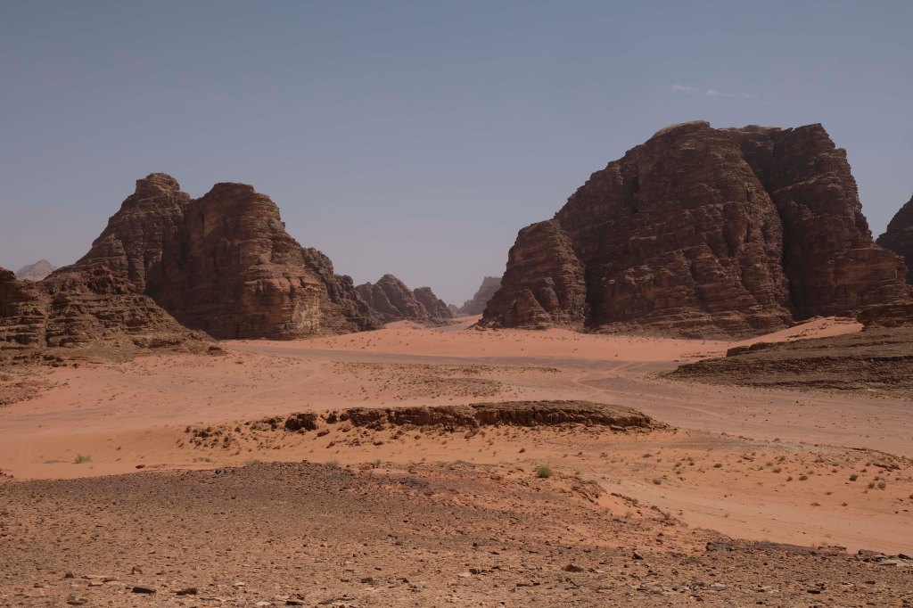 Seine schroffen Felsformationen im feinen Sand machen das Wadi zu einer der schönsten Wüstenlandschaften weltweit. Vor 30 Mio. Jahren entstanden, ist das Wadi Rum 100 km breit und 60km lang und besteht aus Granit und Sandstein sowie großer Sanddünen. Alles wirkt im Morgen- und Abendlicht in herrlichem rostrot. Das Wadi Rum ist sowohl Weltnaturerbe als auch Weltkulturerbe.