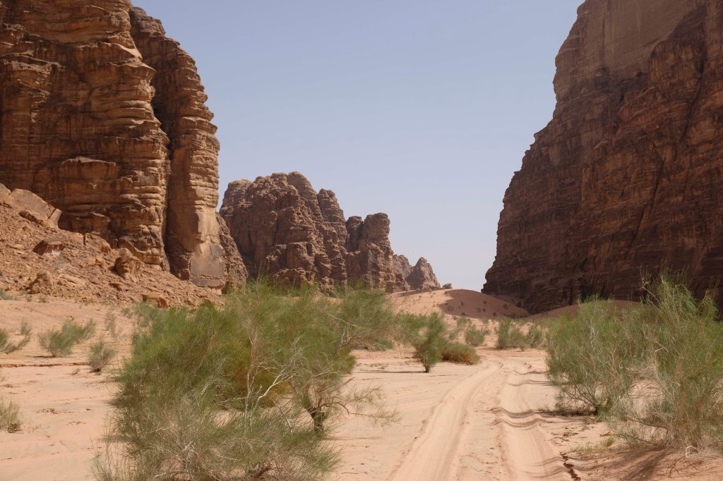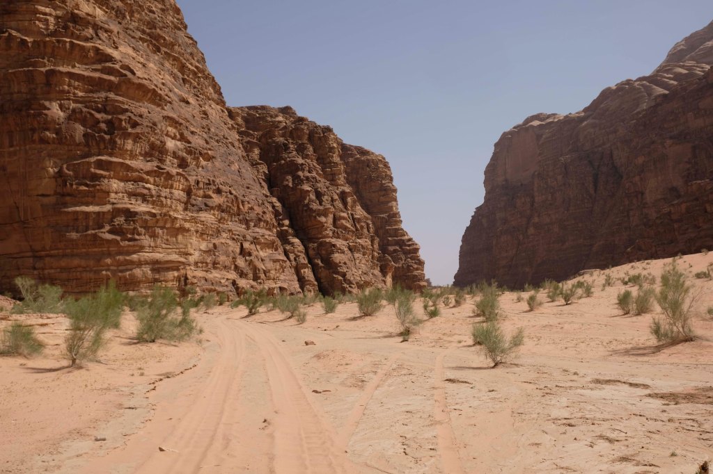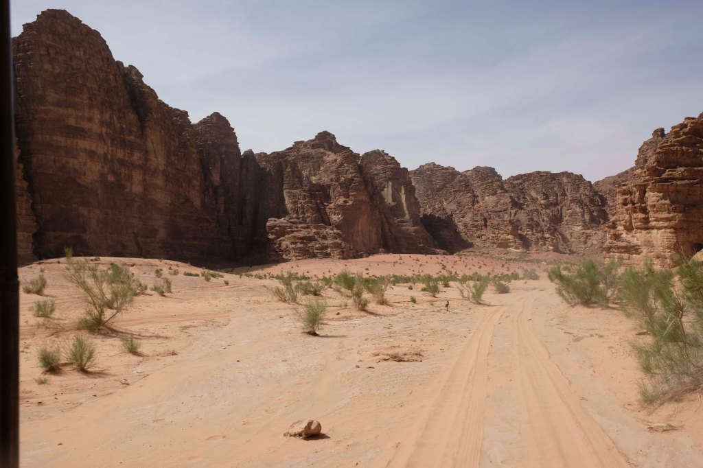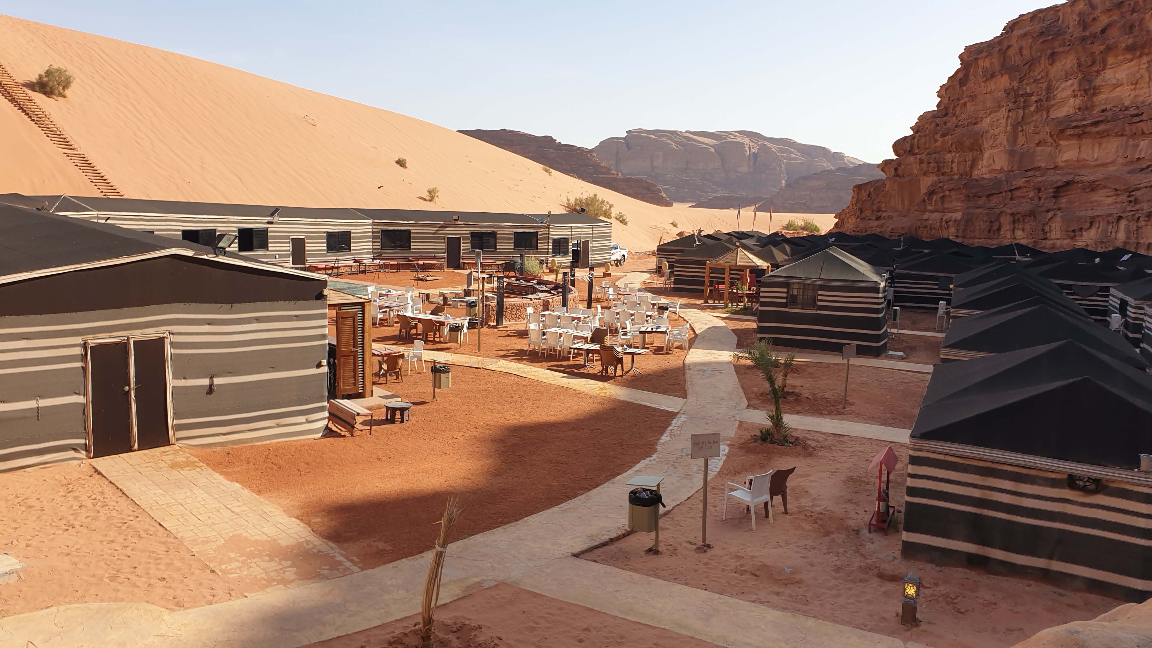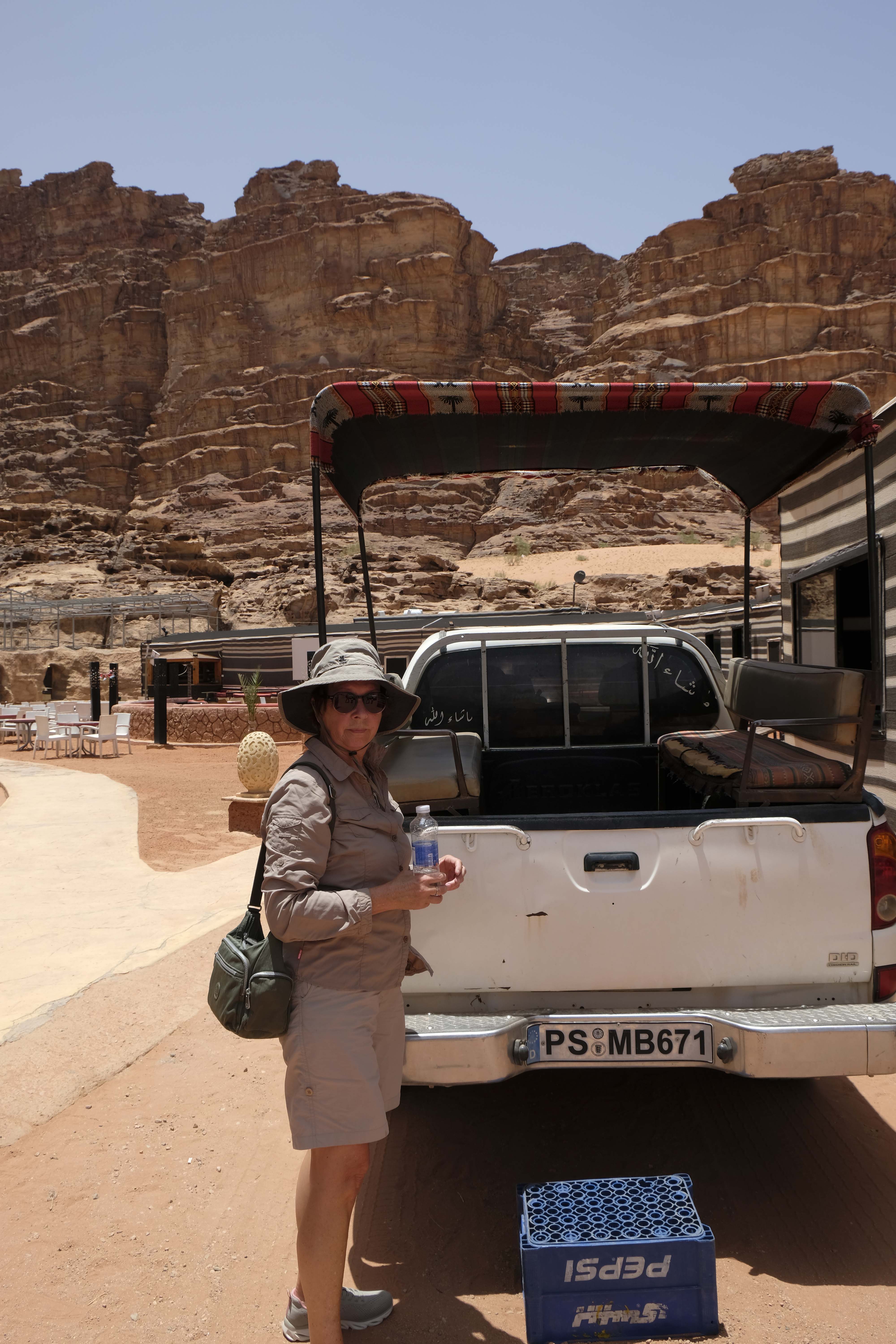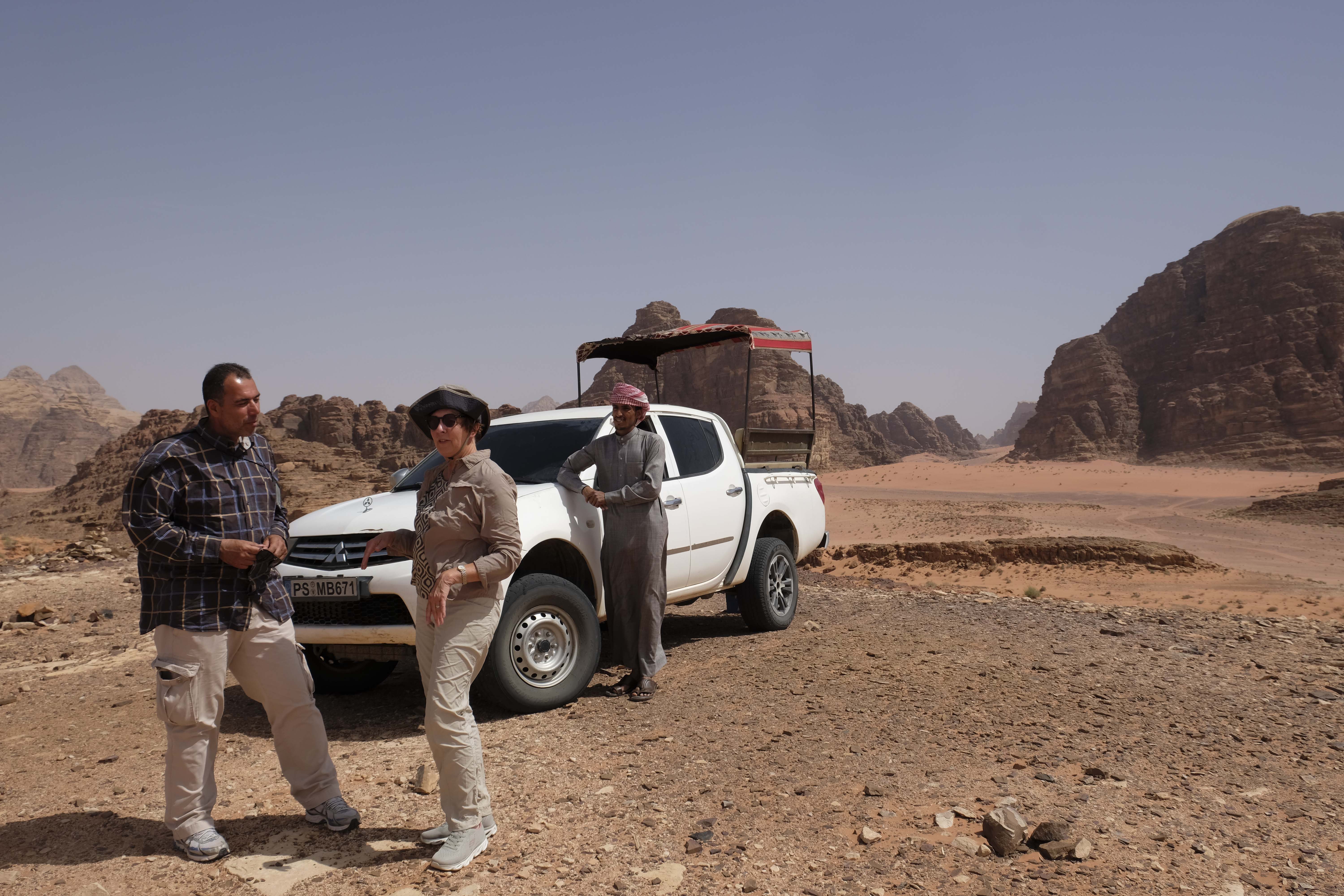 Die Herrschaft beanspruchen mehrere alteingesessene Beduinenstämme. Etwa ein Drittel der Fläche des Wadi wurde im Nordosten des Gebiets für den Tourismus freigegeben, d.h. auf diesem Gebiet bauten die Beduinen Zeltcamps für sich und Touristen. Es sollen inzwischen ca. 200 Camps entstanden sein. Wir übernachten im Rahayeb Desert Camp. Unser Fahrer brachte uns bis zum Ende der befestigten Straße – dann übernahm uns der Jeep des Camps.