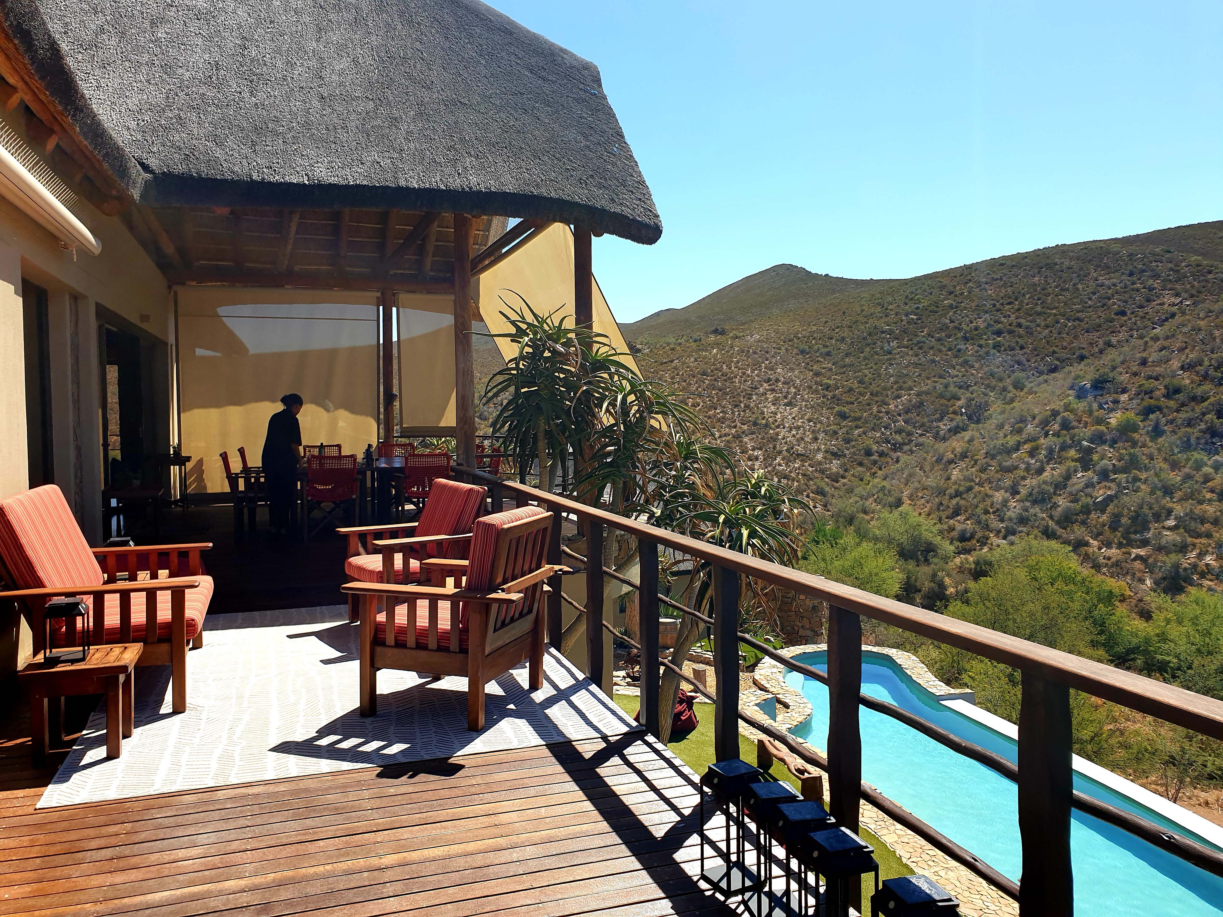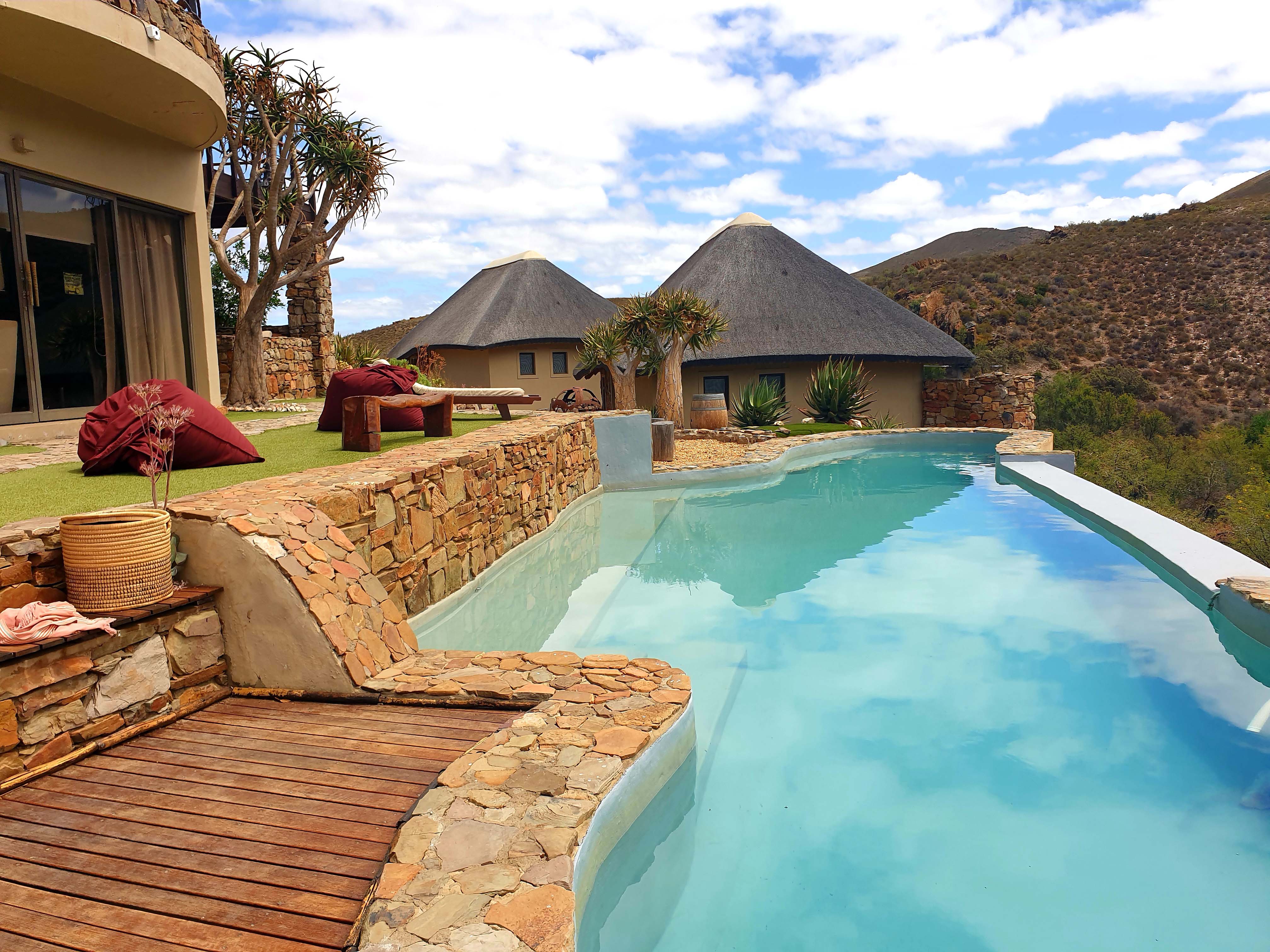 Unser Quartier ist die White Lion Lodge im Süden des Sanbona Wildlife Reserve. Sie ist eine Oase der Ruhe mit einem schönen Garten, Pool und einer guten Wellnessabteilung und verfügt nur über vier sehr komfortable Bungalos.
