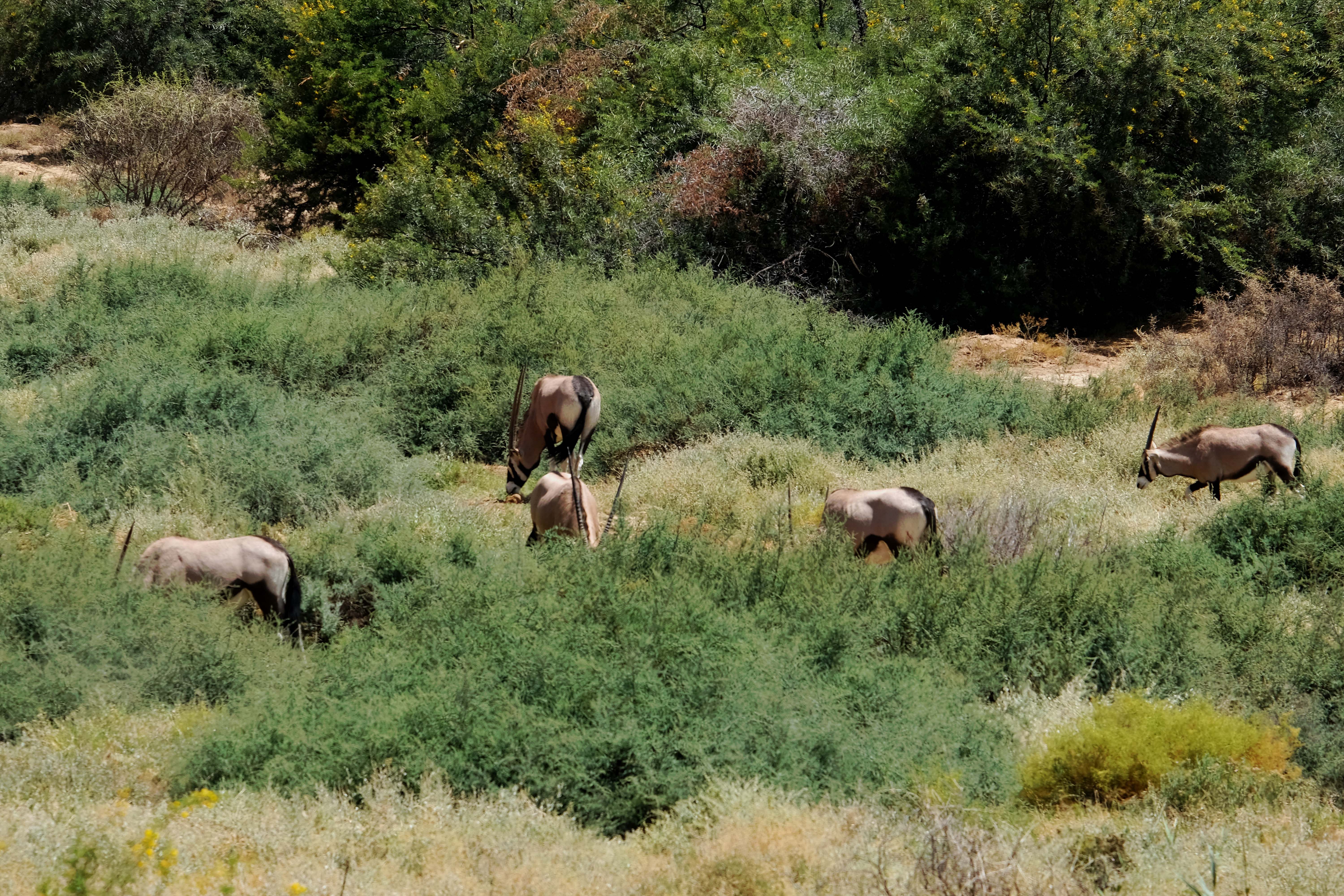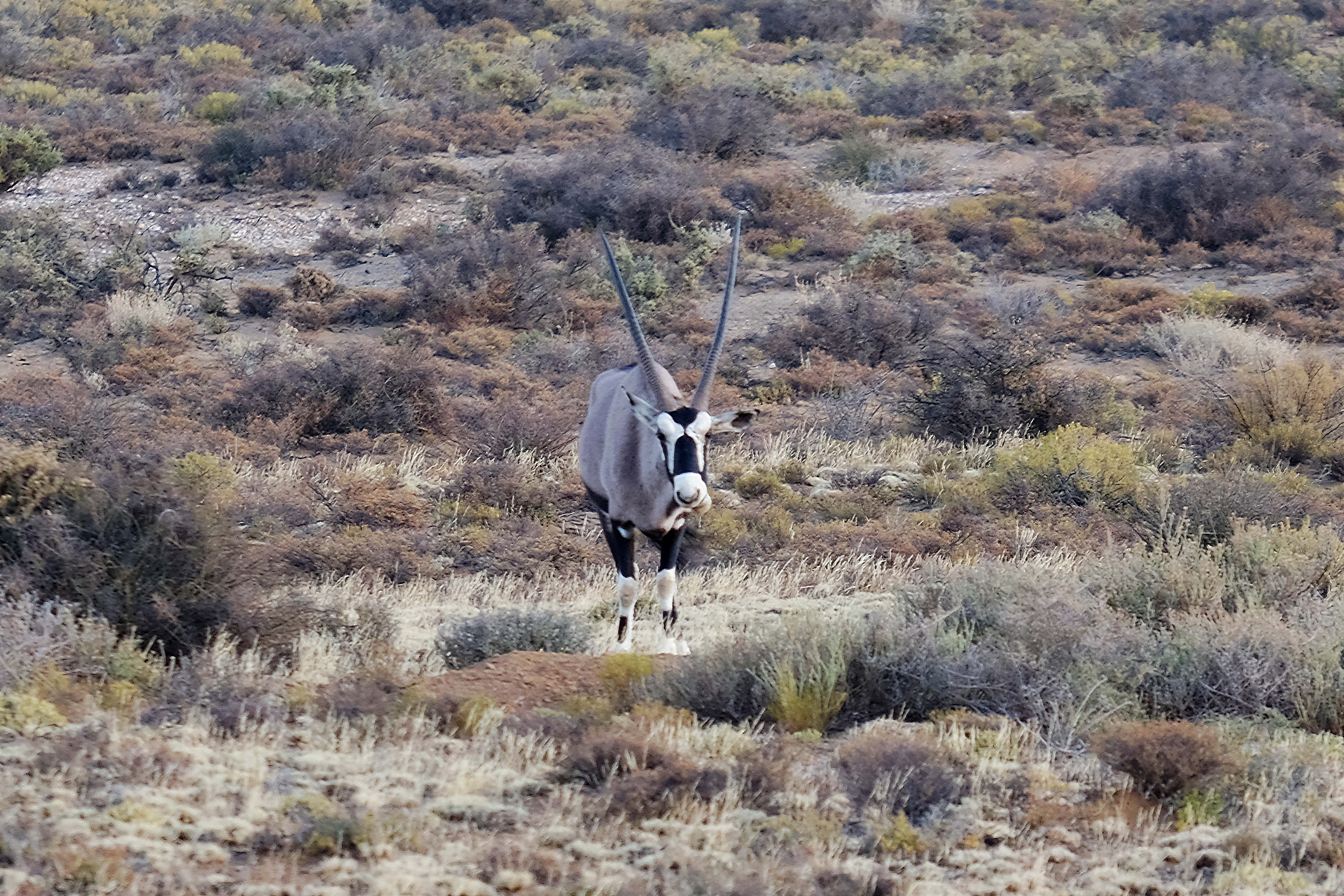 Oryxe kommen in Namibia sogar in der Wüste vor und sind typische Bewohner dieser kargen Landschaft. Leider sehen wir sie nur aus großer Entfernung.