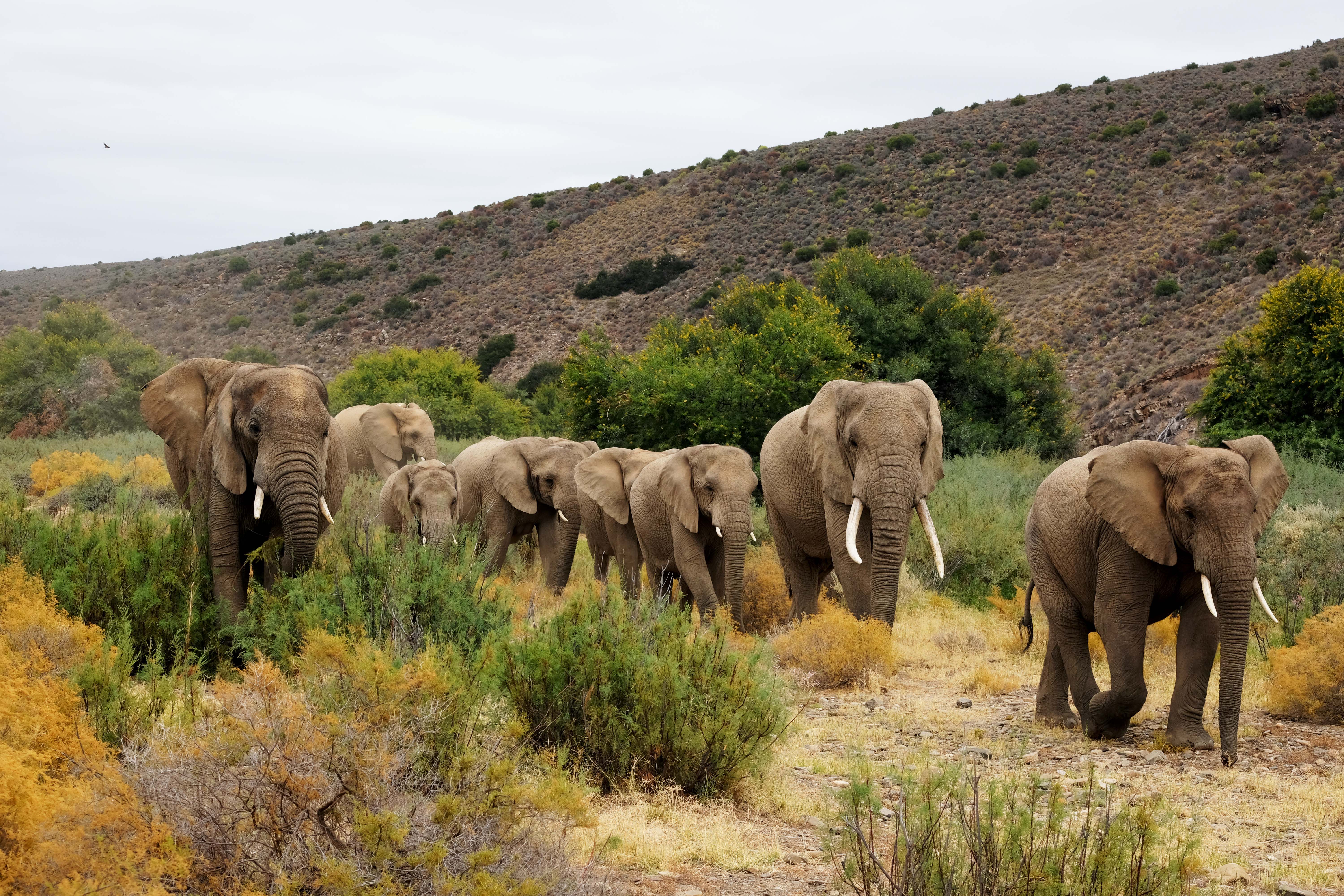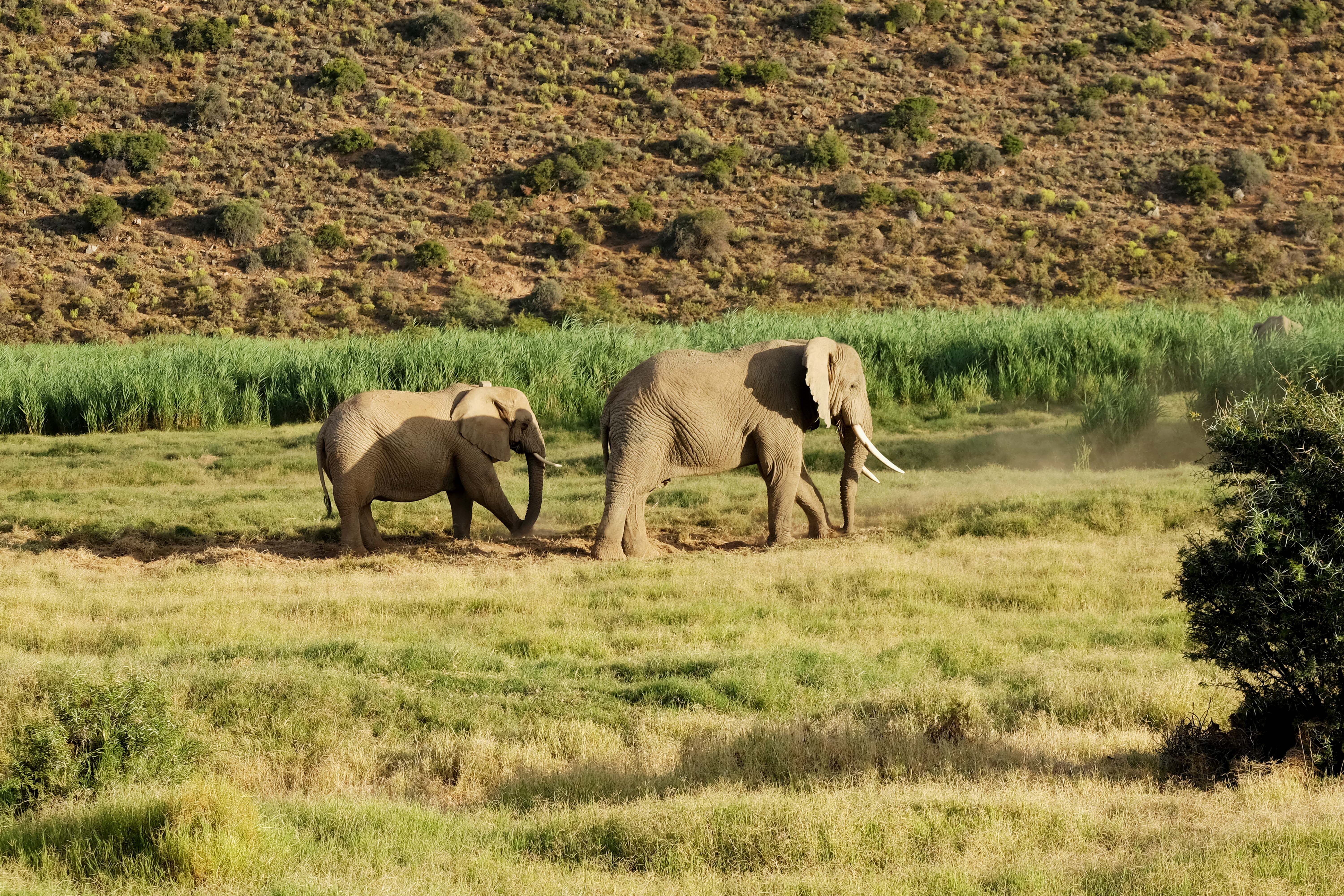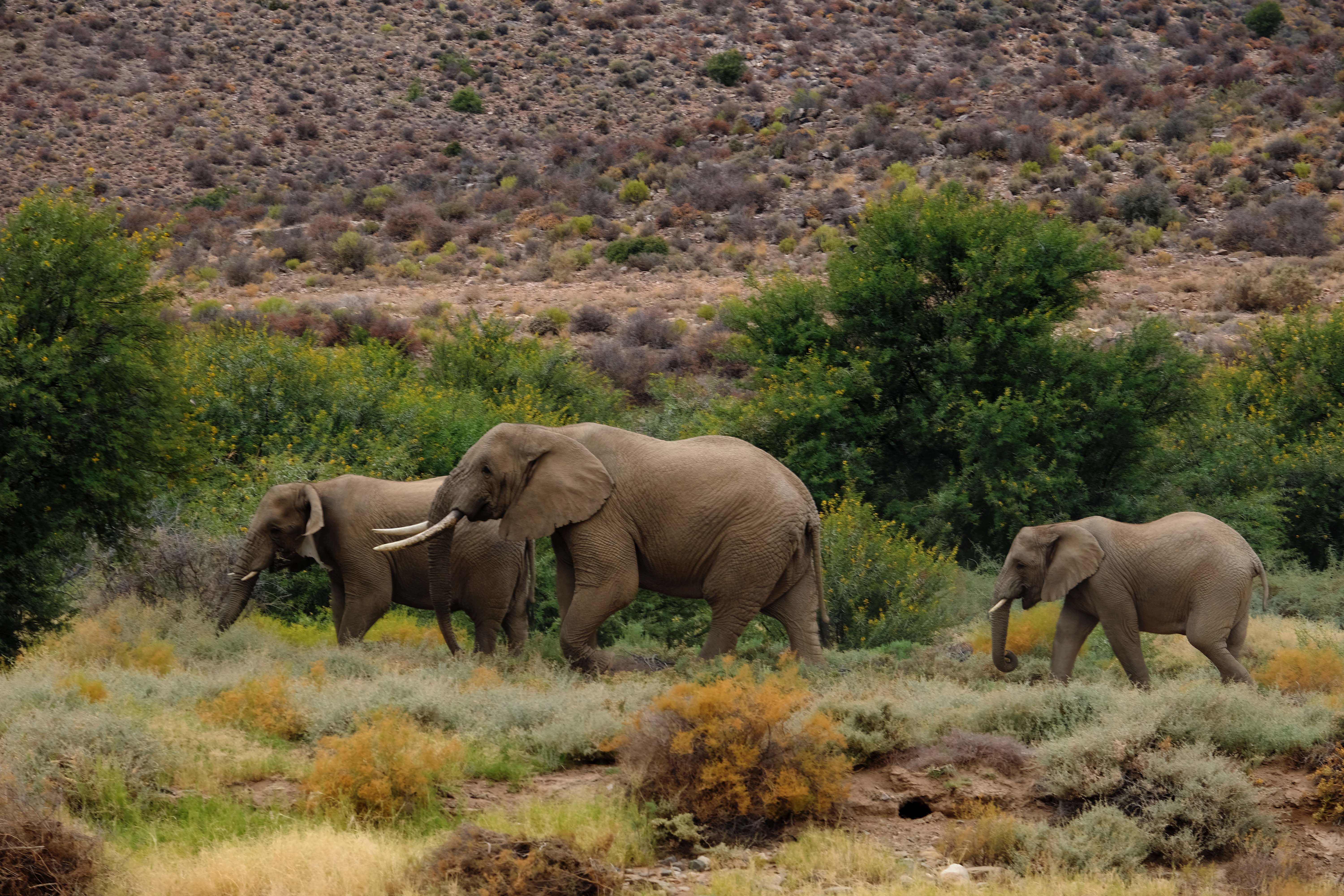 Die Landschaft ändert sich und die Täler werden fruchtbarer. Hier sehen wir auch die großen Tiere.
