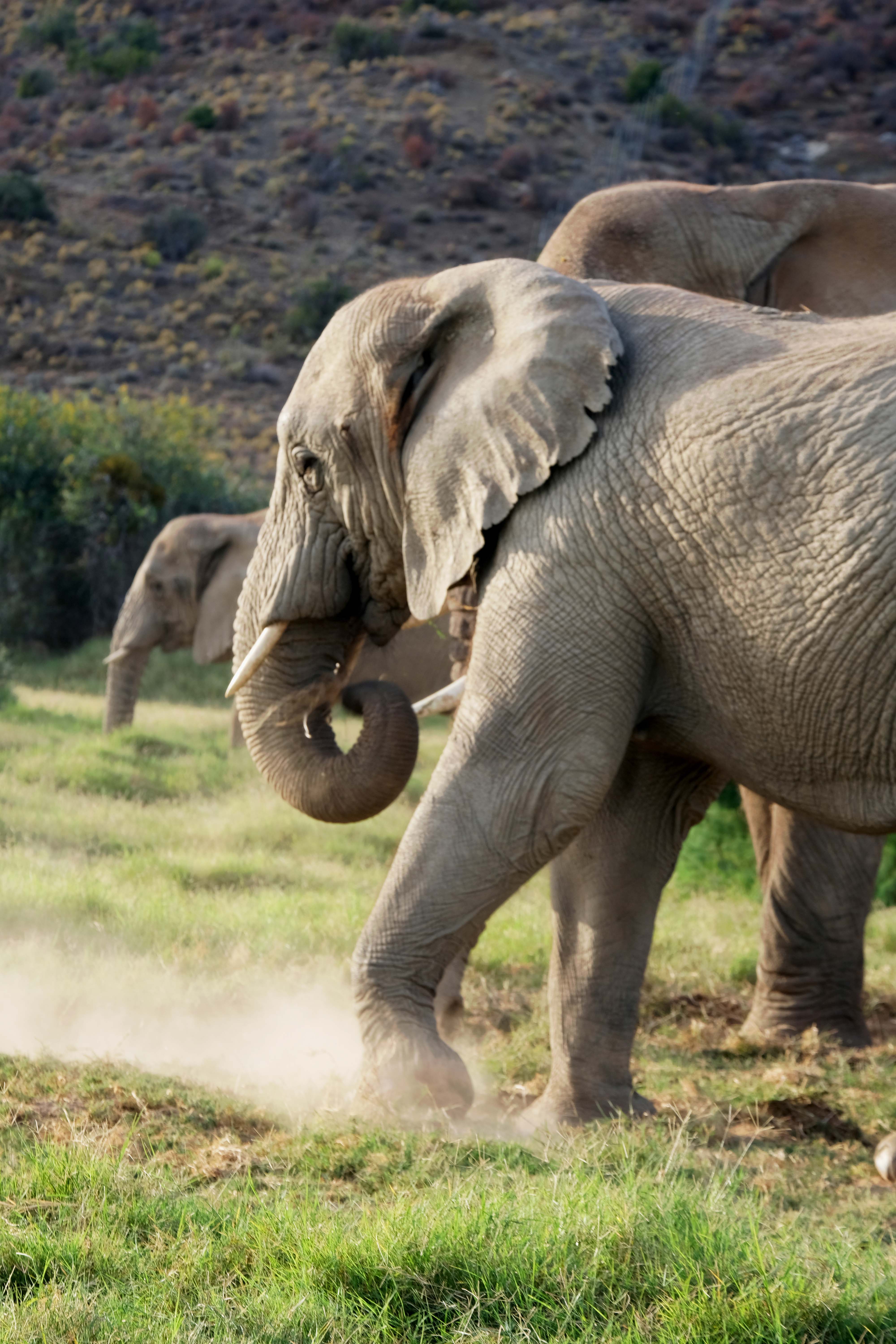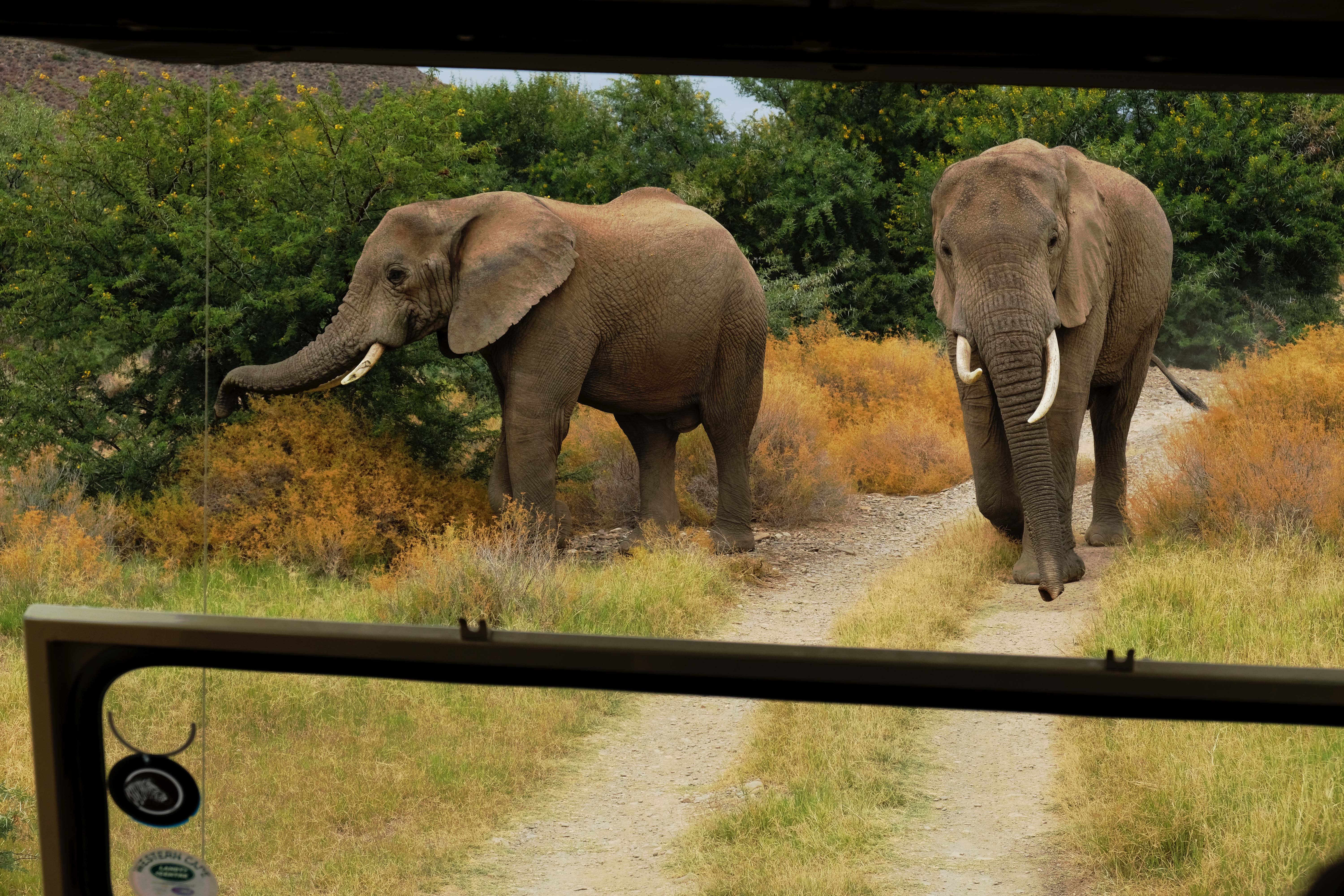Auf unserer zweiten Tour treffen wir wieder auf die Elefanten. Diesmal ziehen sie zu einem neuen Futterplatz.