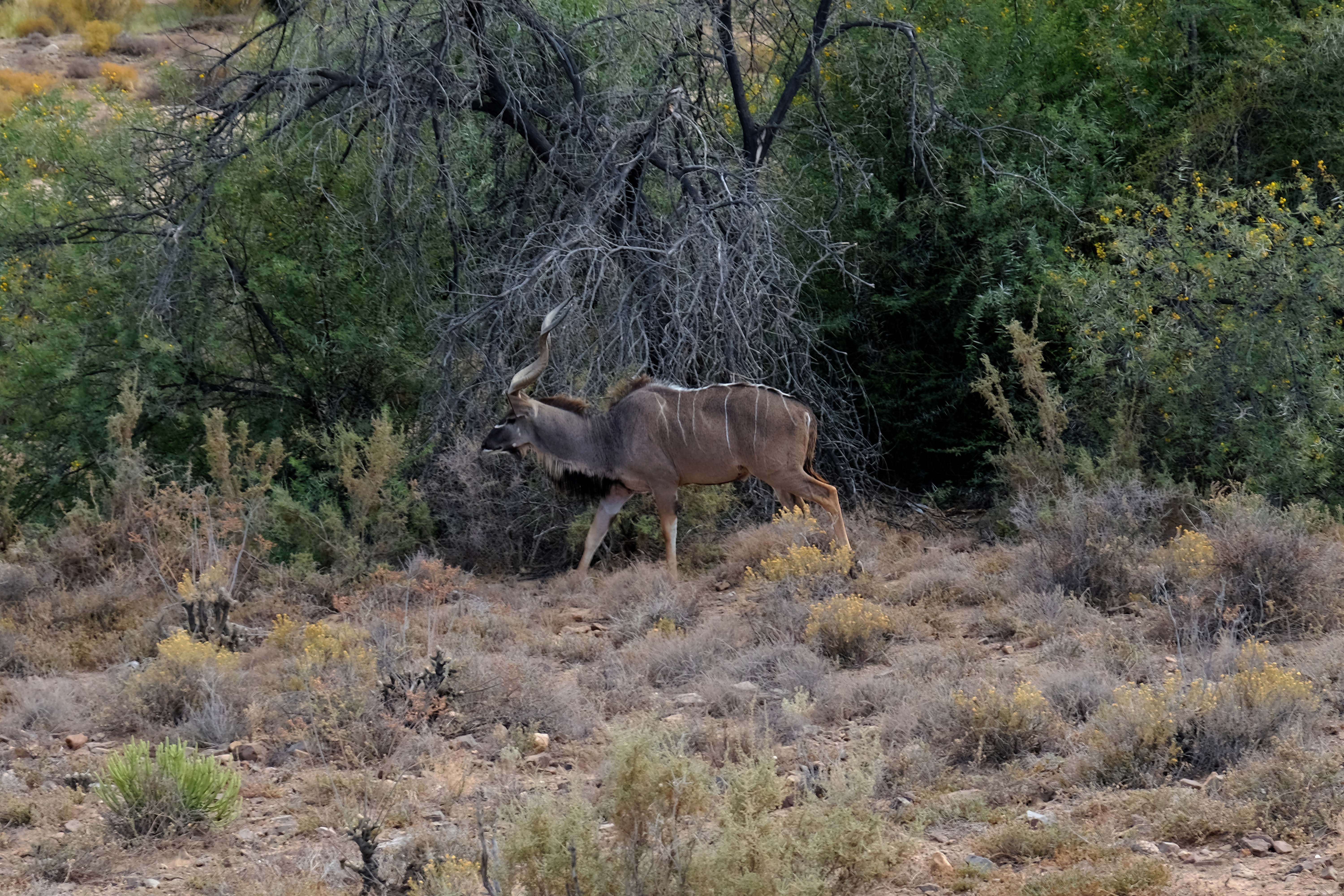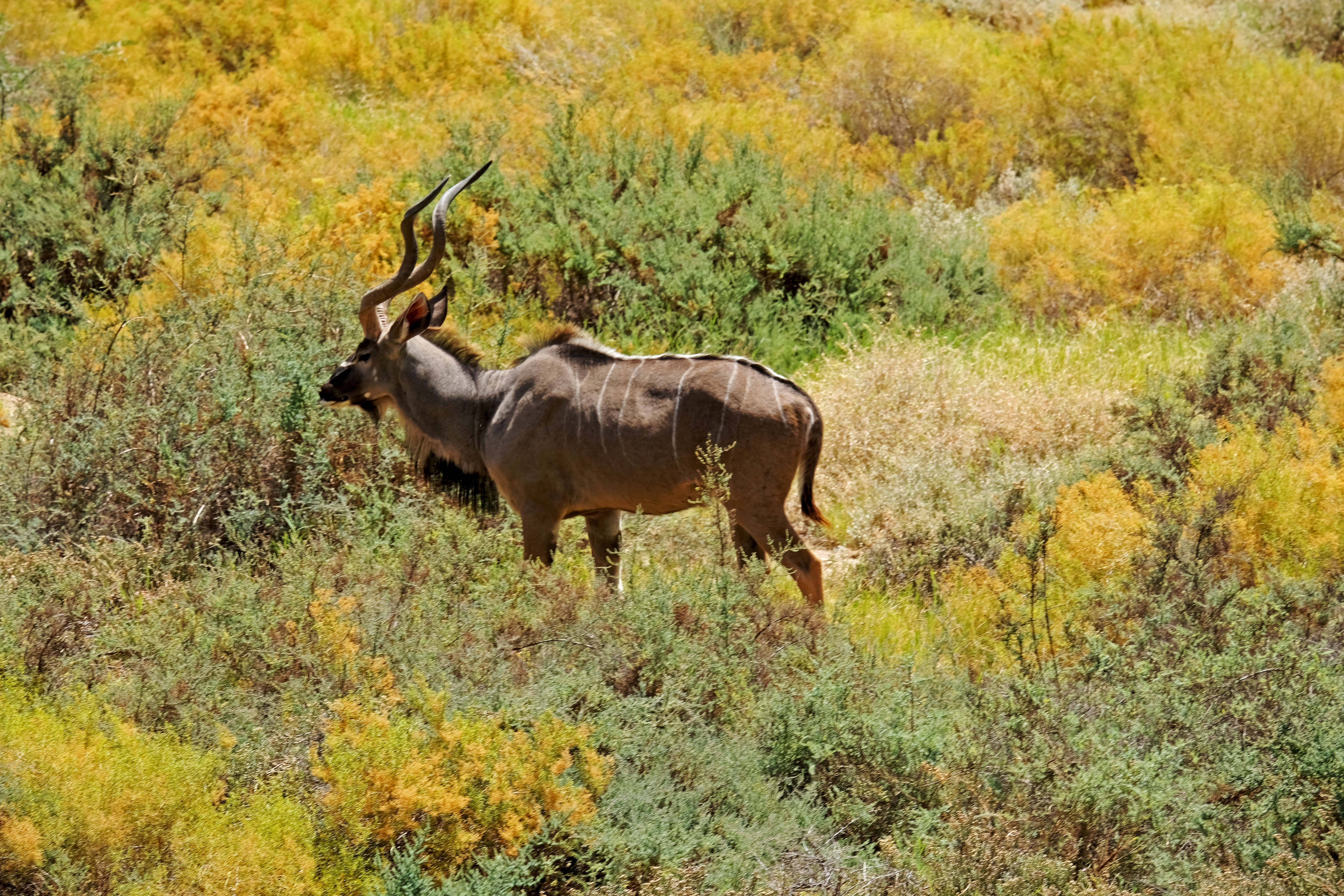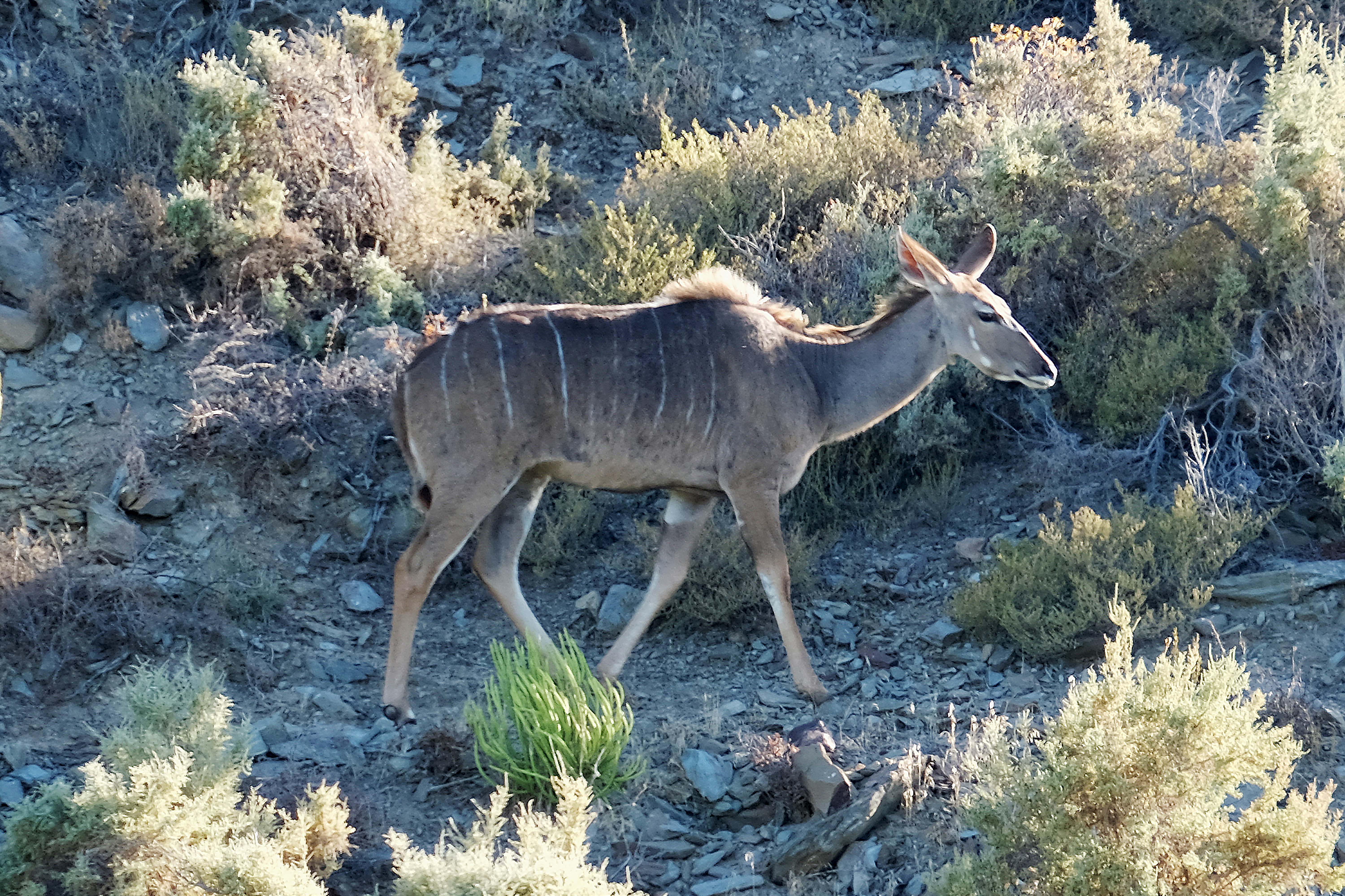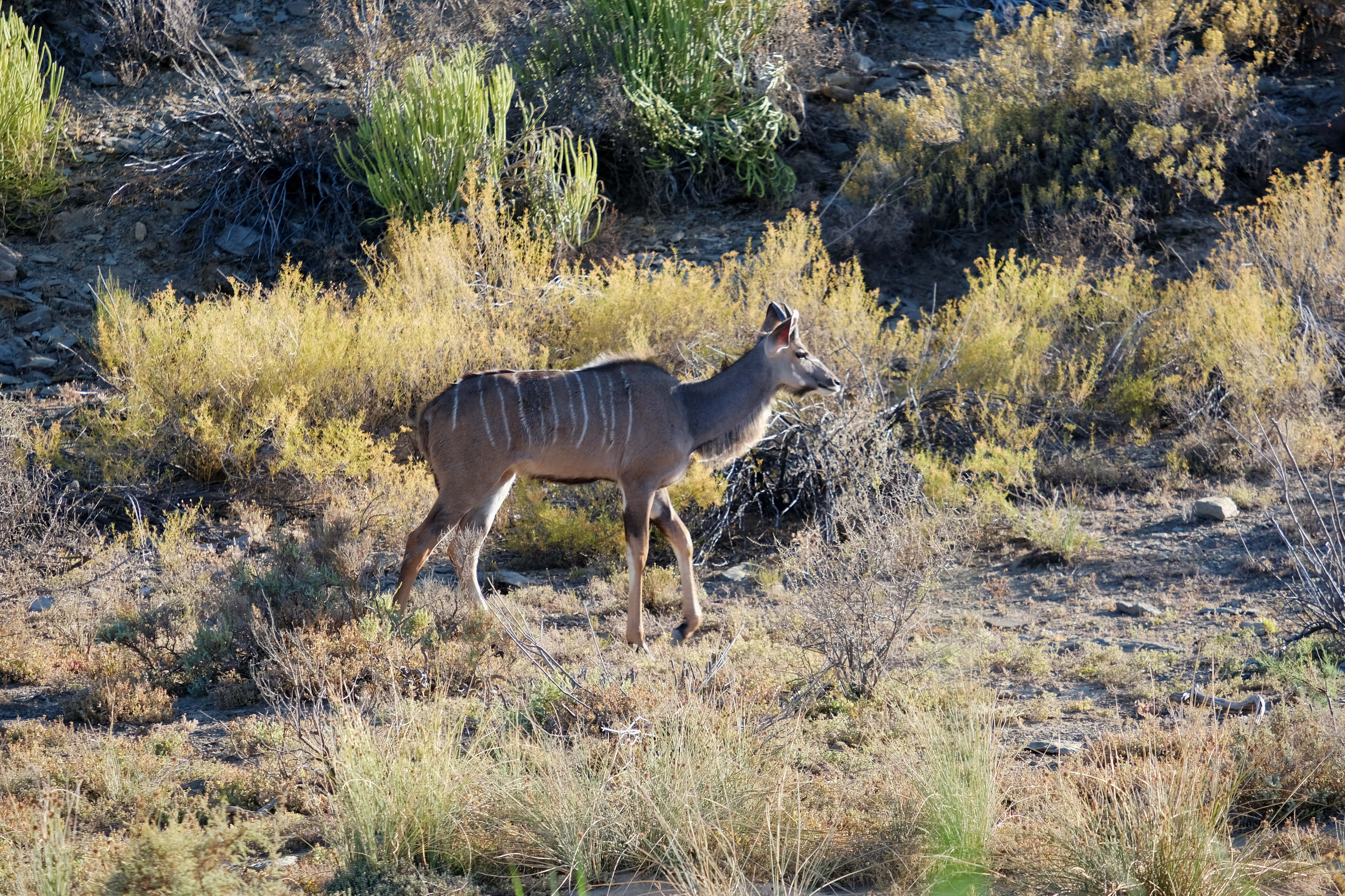 Auch die leicht gestreiften Kudus sind hier häufig während der Fahrt zu sehen.