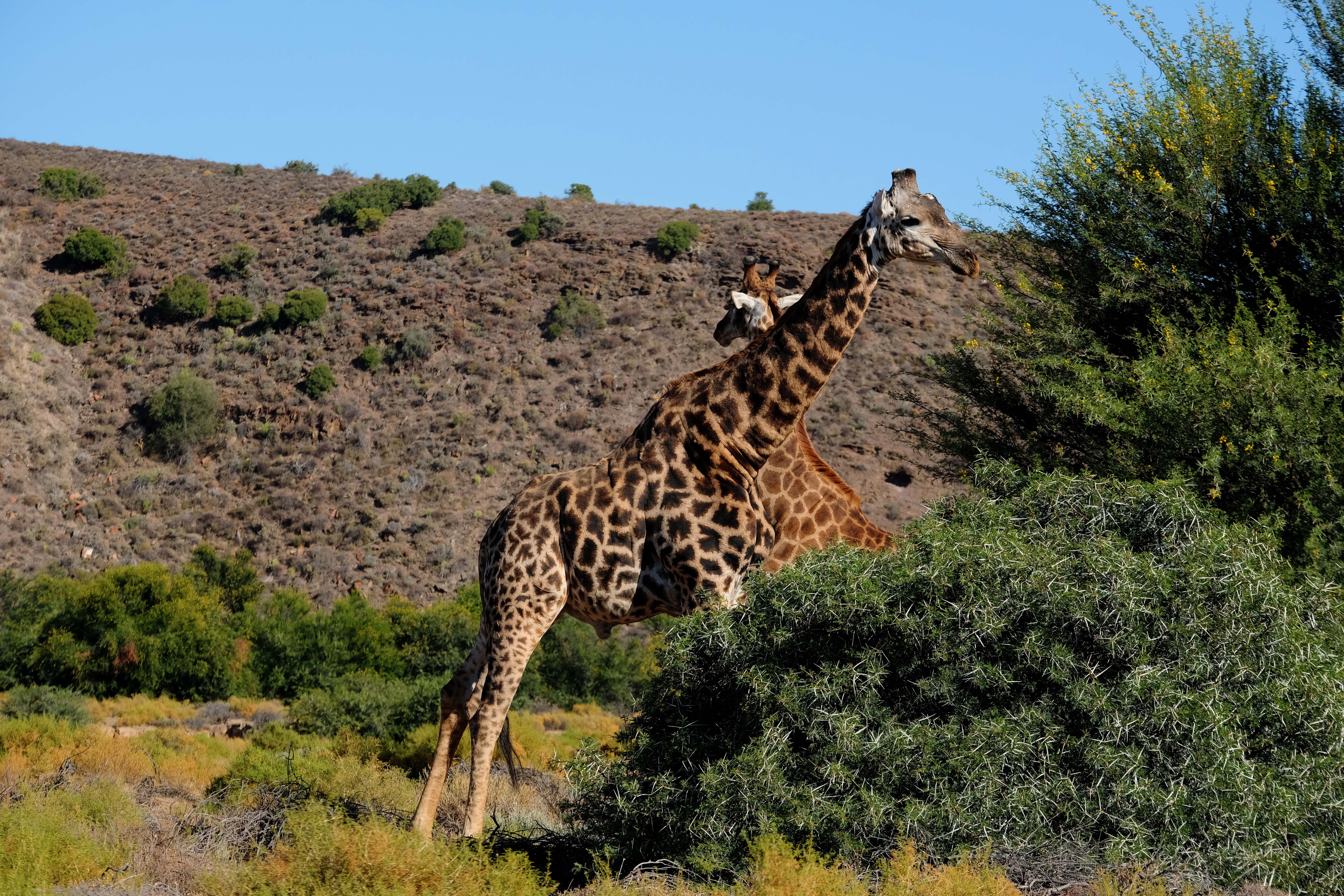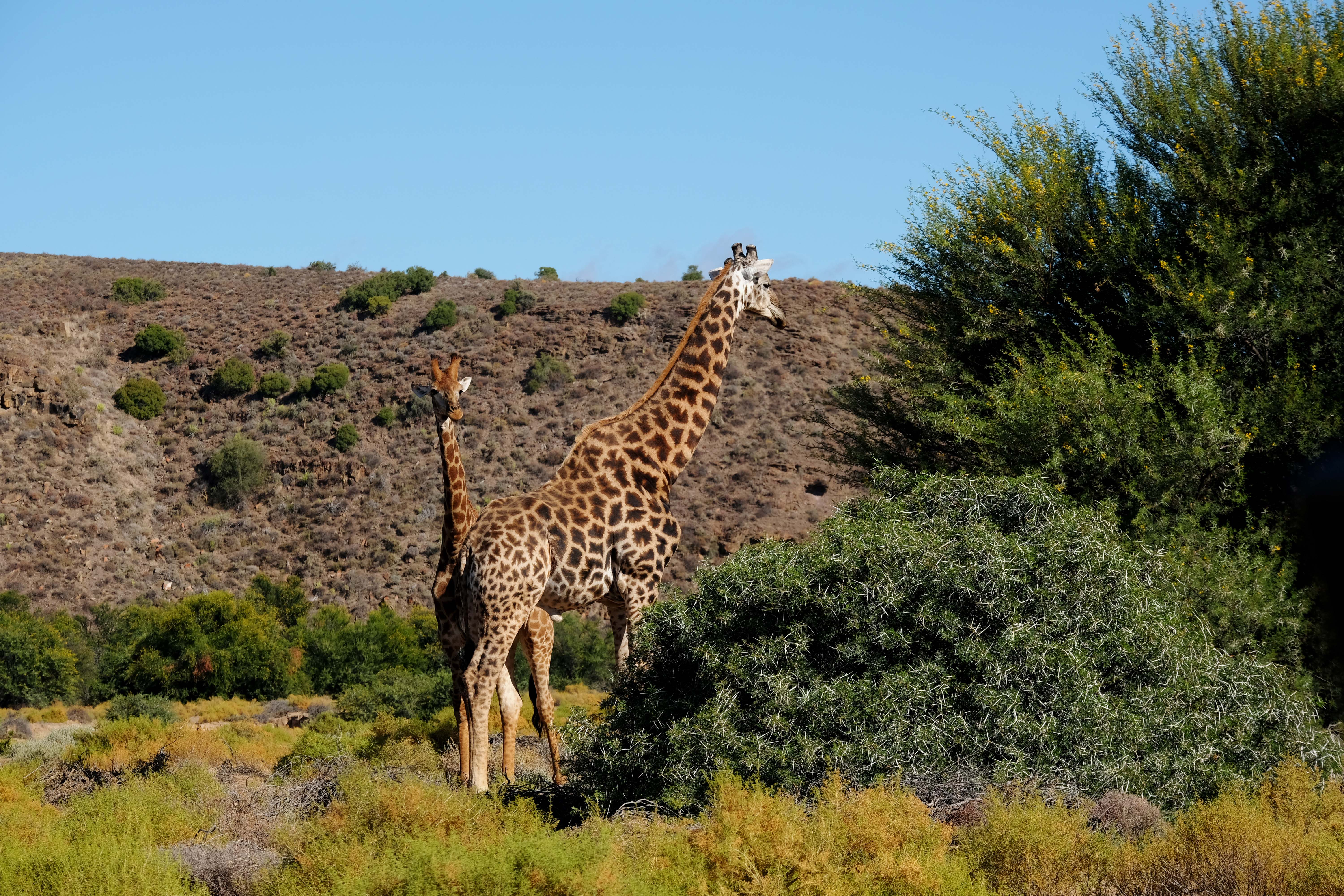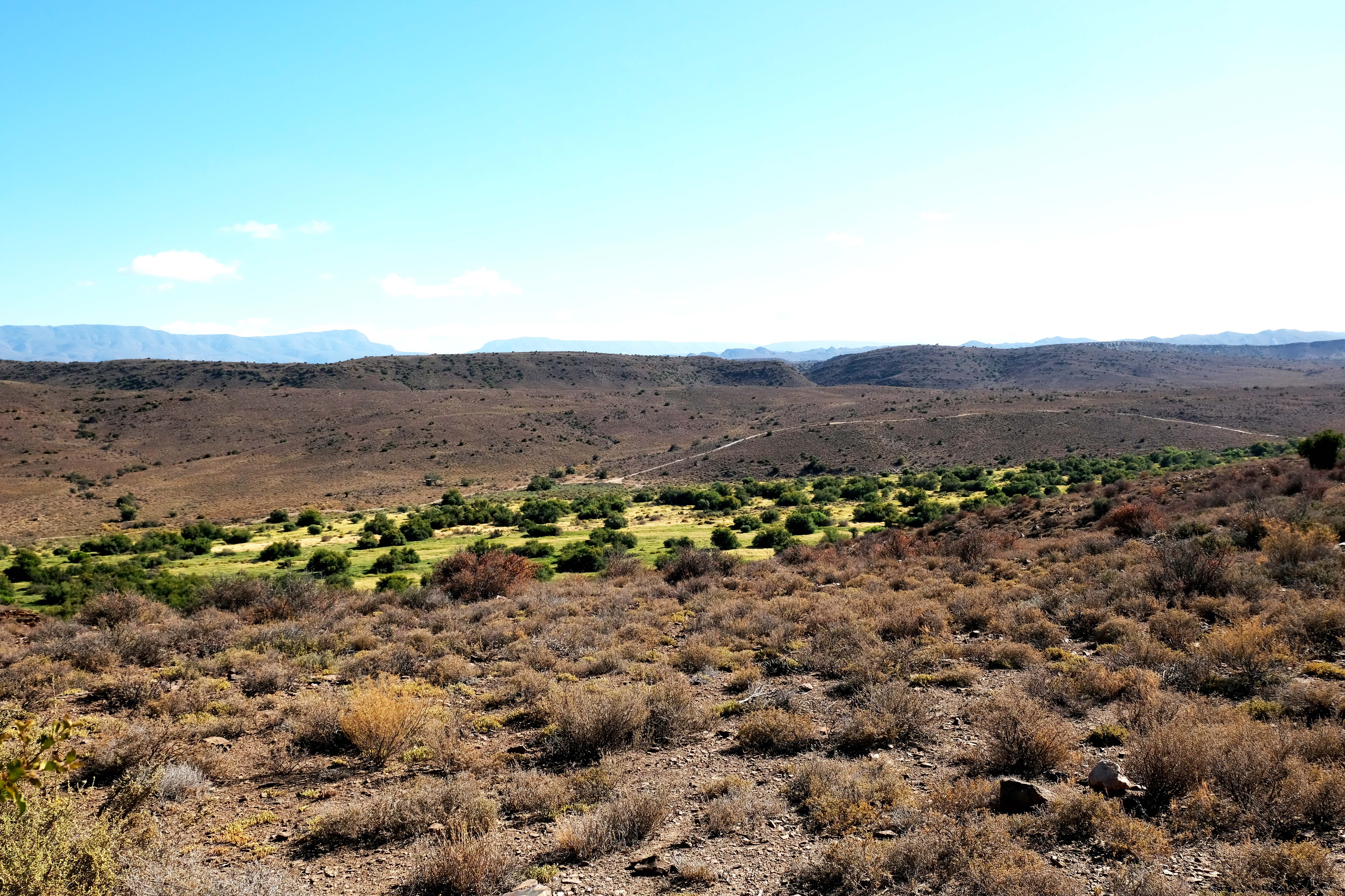 Das Areal ist eine trockene Savannenlandschaft in der Sukkulenten-Karoo. Dabei ist der Süden noch wesentlich trockener als der Norden, denn im Norden gibt es einige Seen und grüne Täler, und damit auch wesentlich mehr Tiere.