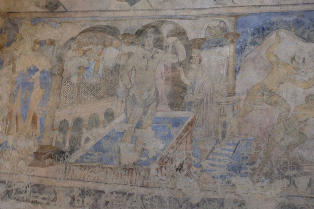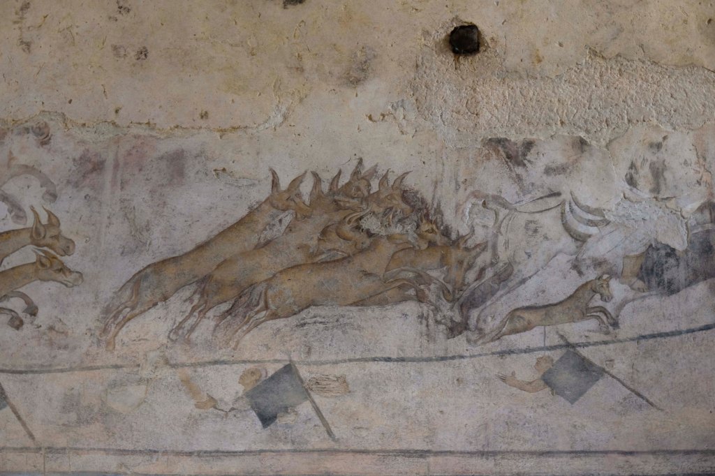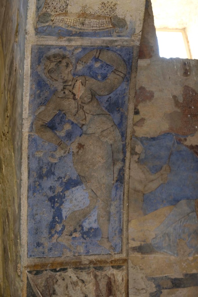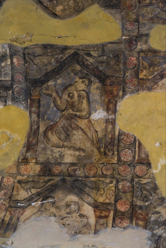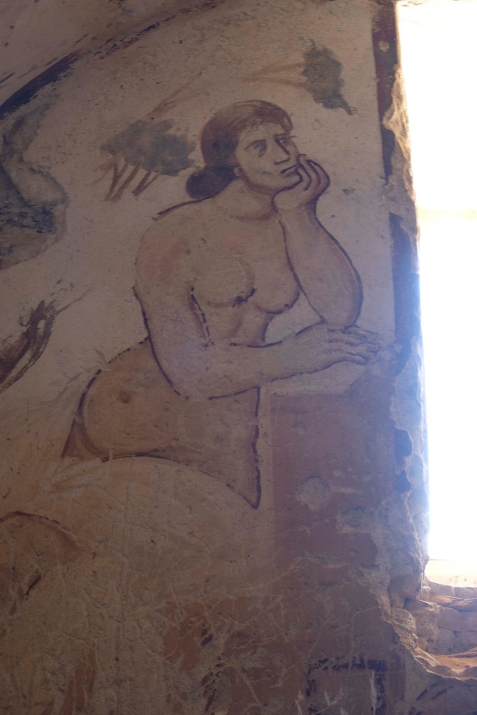 Die Fresken im Innern zeigen sogar Menschen, was im späteren Islam niemals erlaubt war. Spätere Bilder im Islam zeigen ausschließlich geometrische und pflanzliche Motive. Die Decke der 3schiffrigen Eingangshalle zeigt sogar ein Bild einer nackt badenden Frau. Auch im Badehaus sind ähnliche Fresken zu sehen.