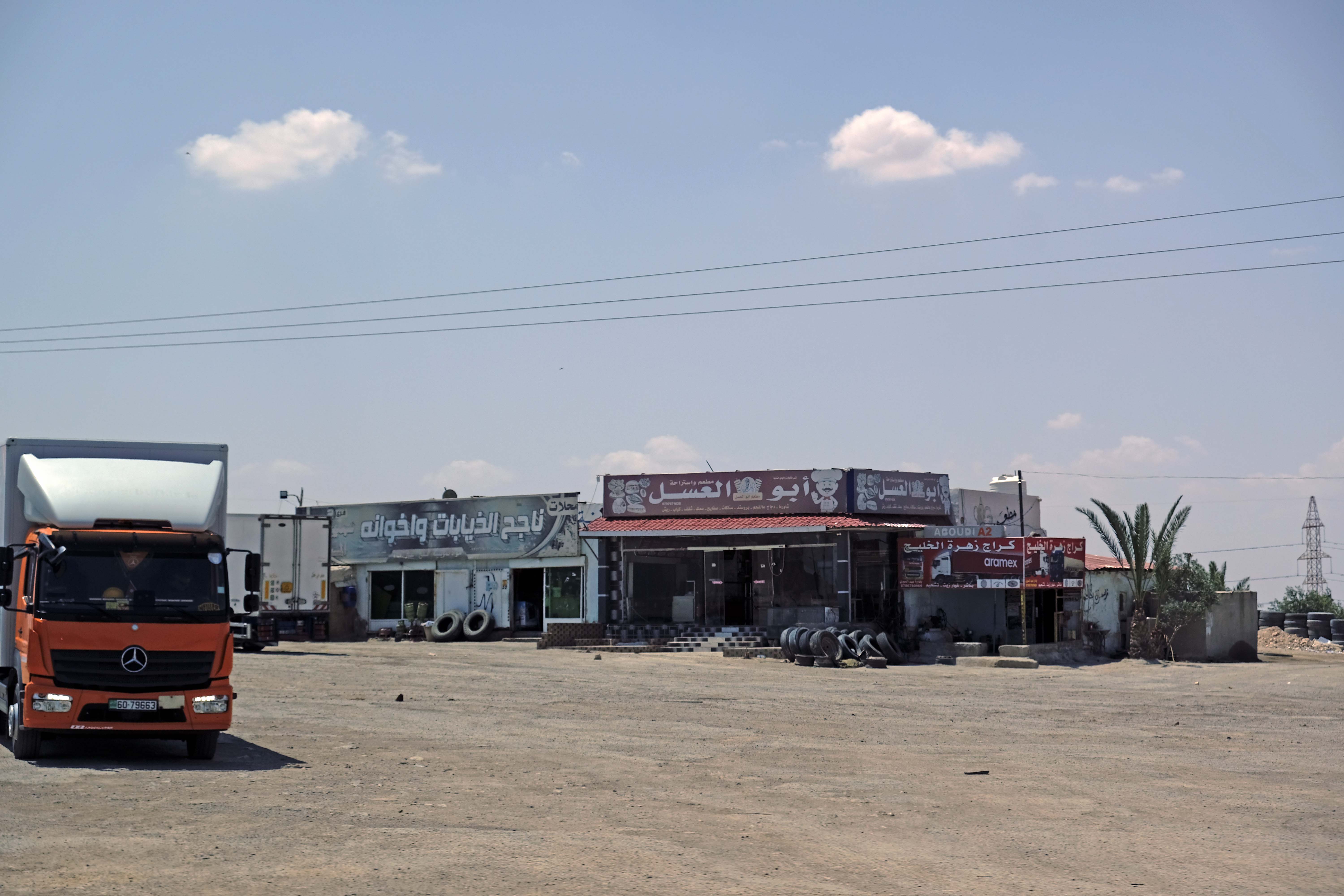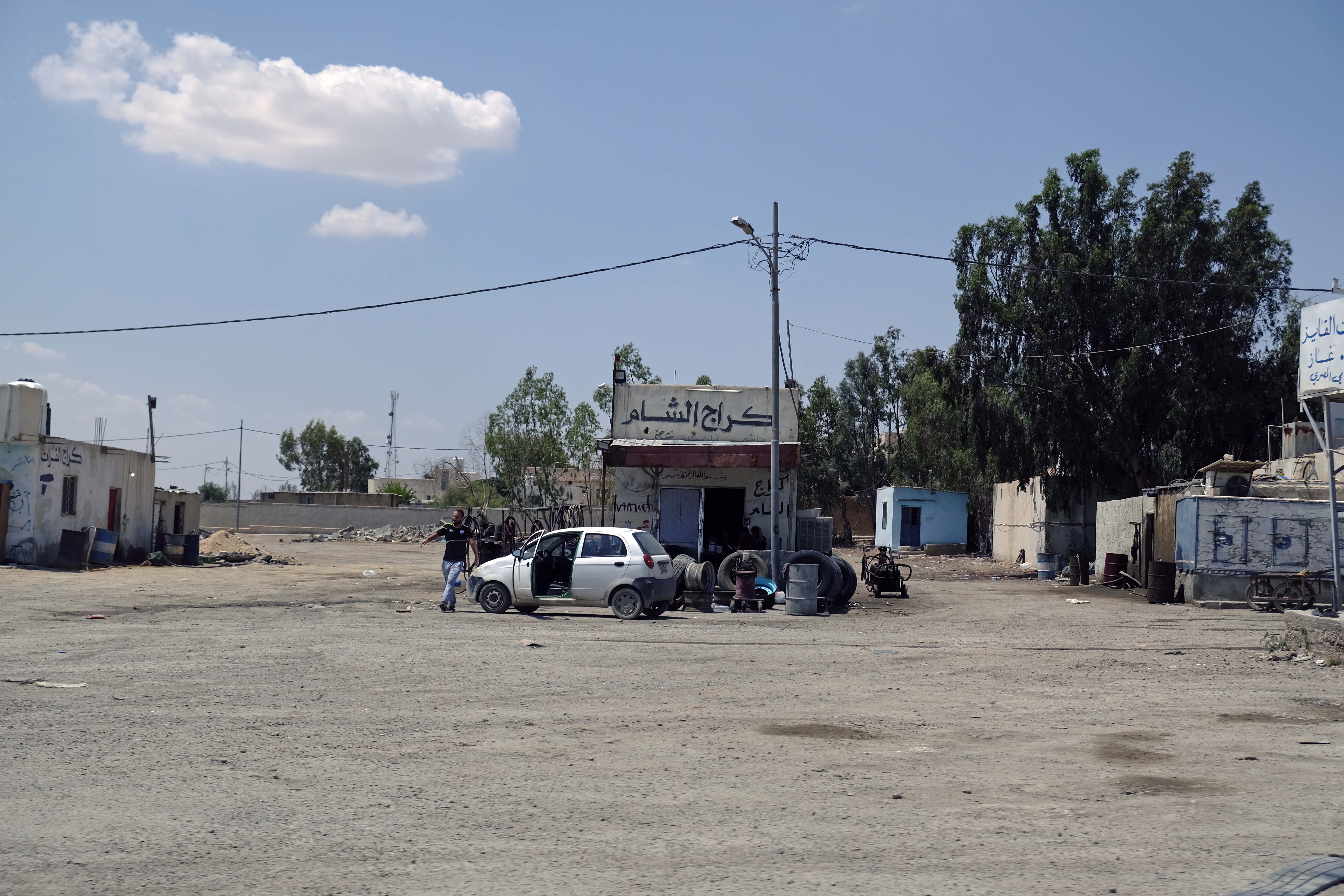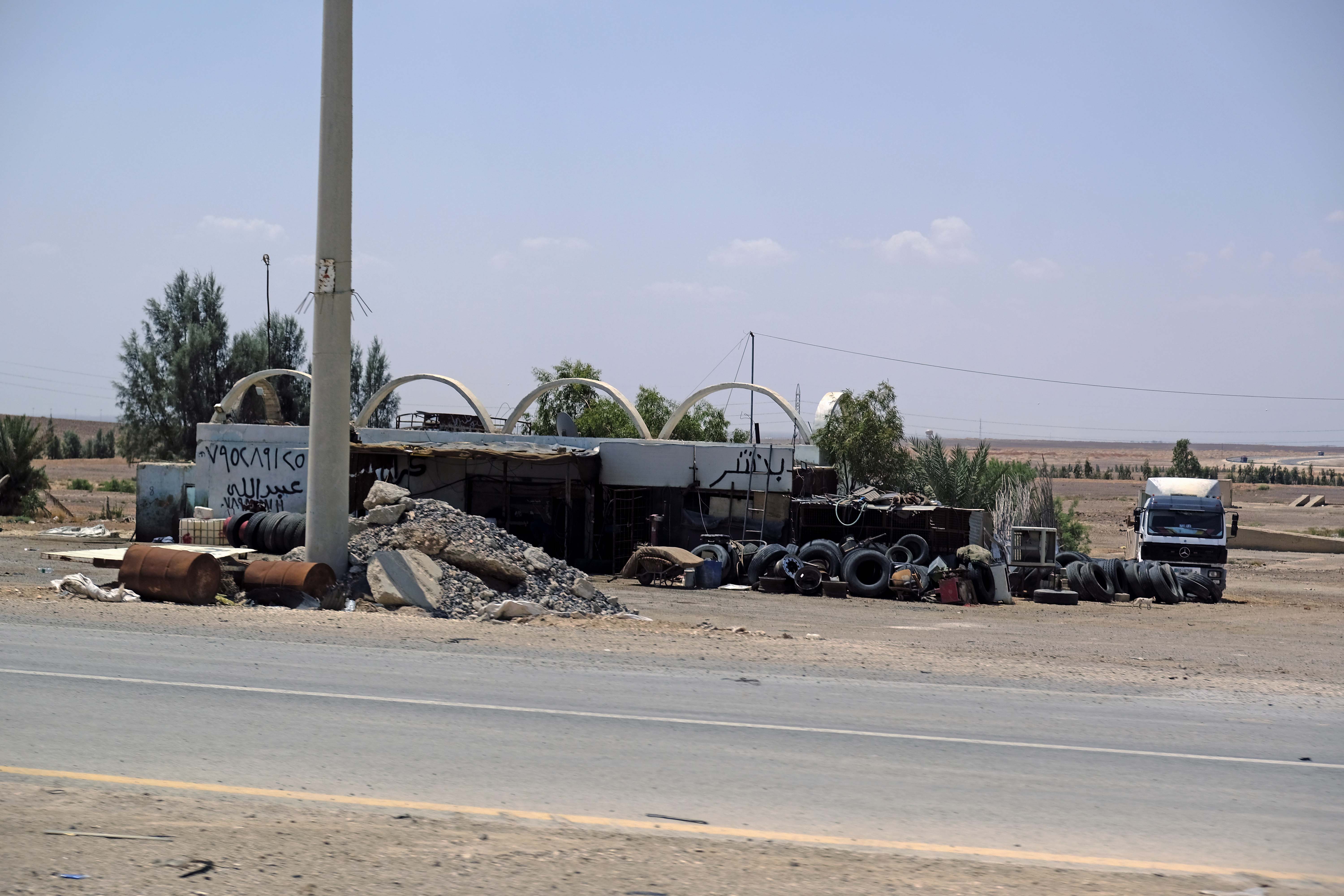 Wir nähern uns der Oase Azraq vorbei an kleinen Werkstätten und Moscheen.