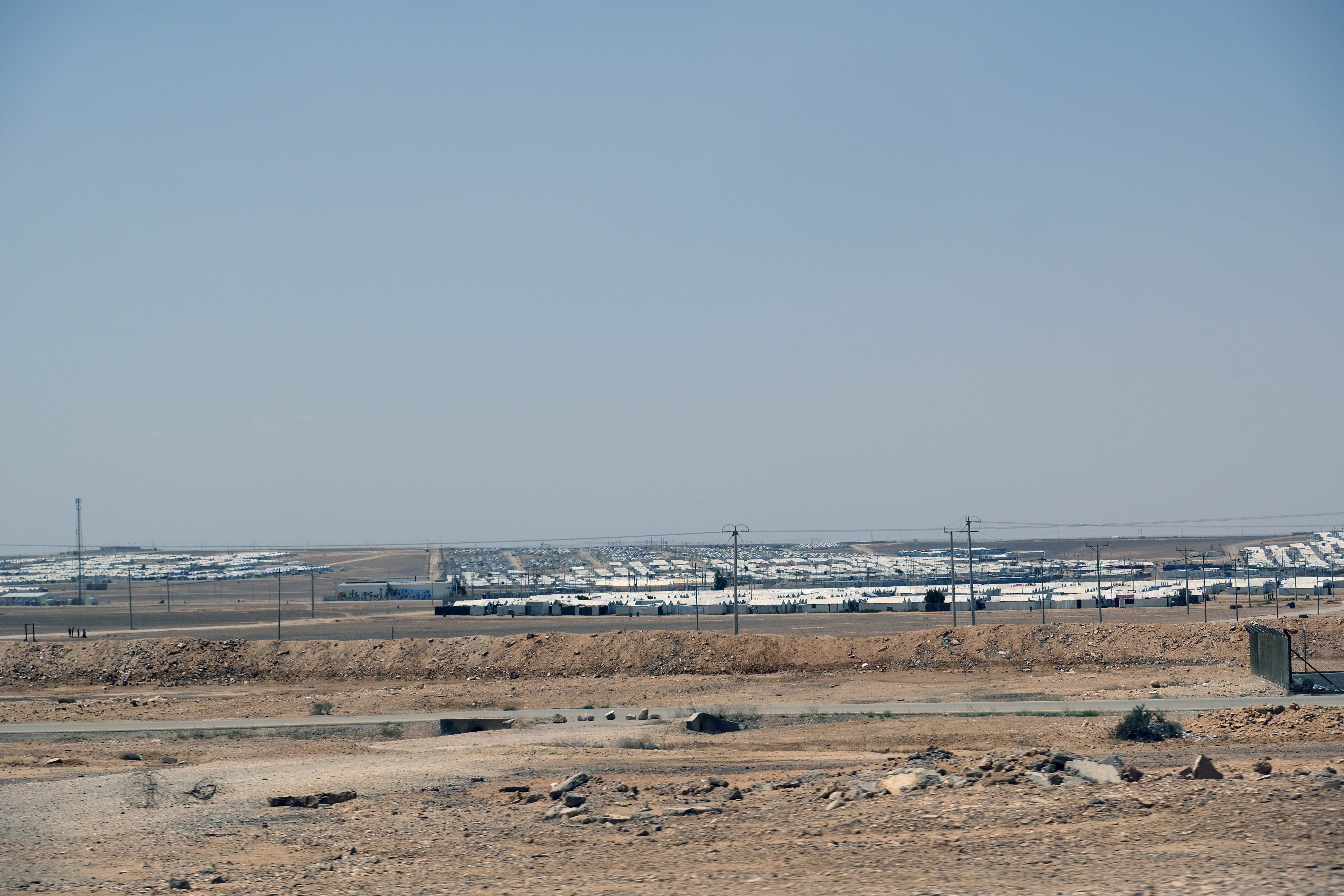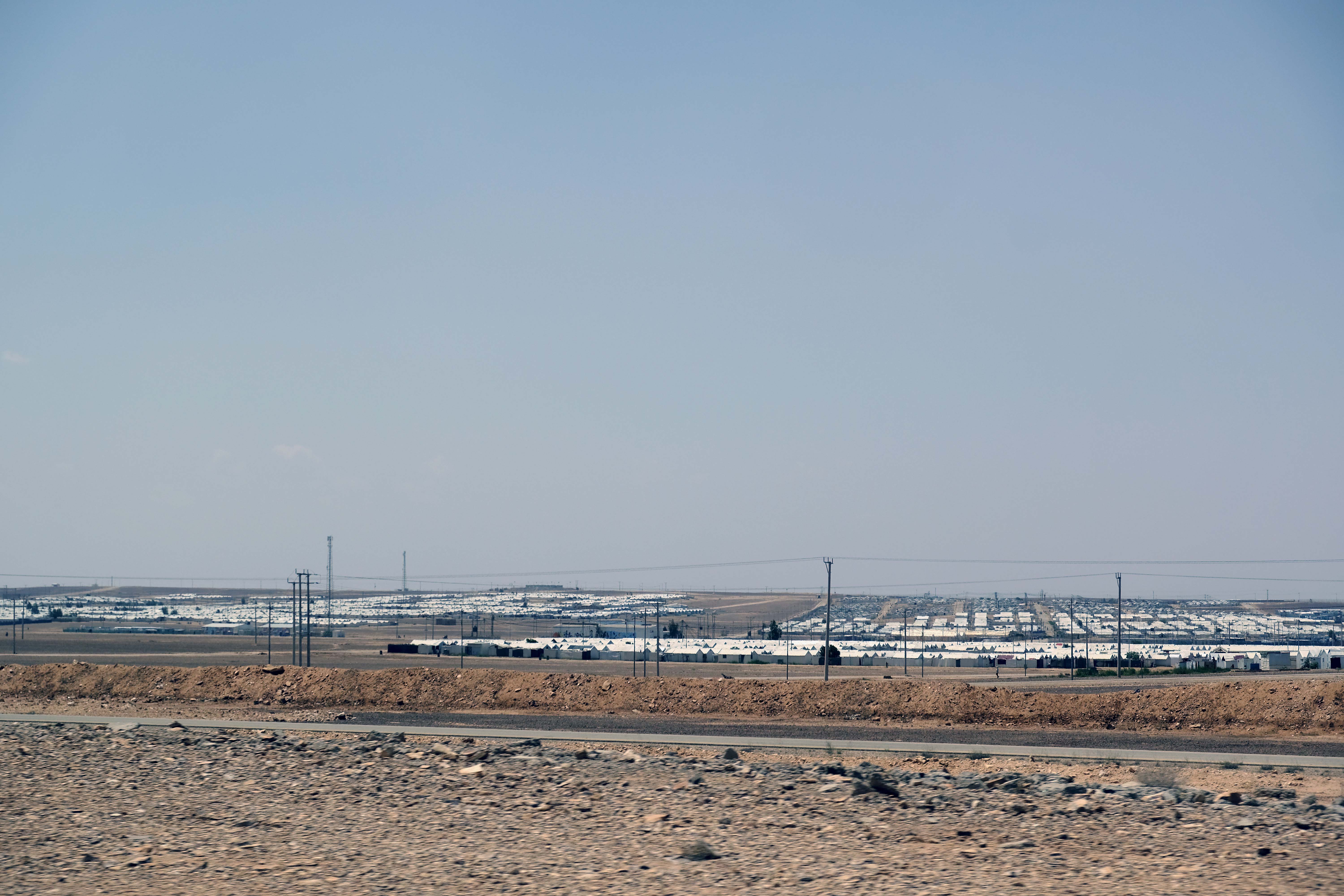 Wir passieren ein riesiges Flüchtlingslager, welches zur Aufnahme von 1.2 Mio Flüchtlingen aus Syrien dient, die über Irdib nach Jordanien gekommen sind. Inzwischen sind viele weitergereist. Solche Bilder kannten wir bisher nur das dem Fernsehen. Endlos viele Zelte reihen sich aneinander. Es ist mehr als bedrückend, was wir hier sehen.